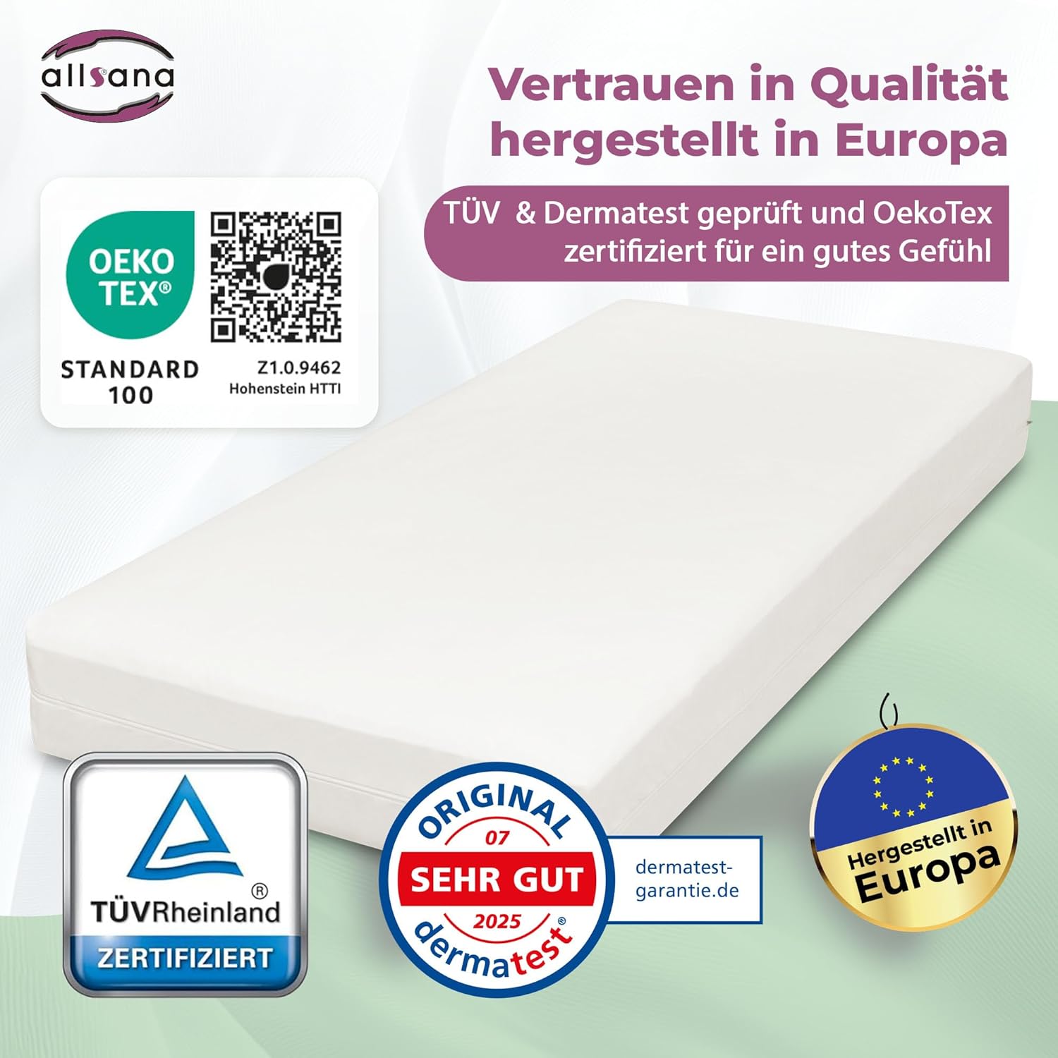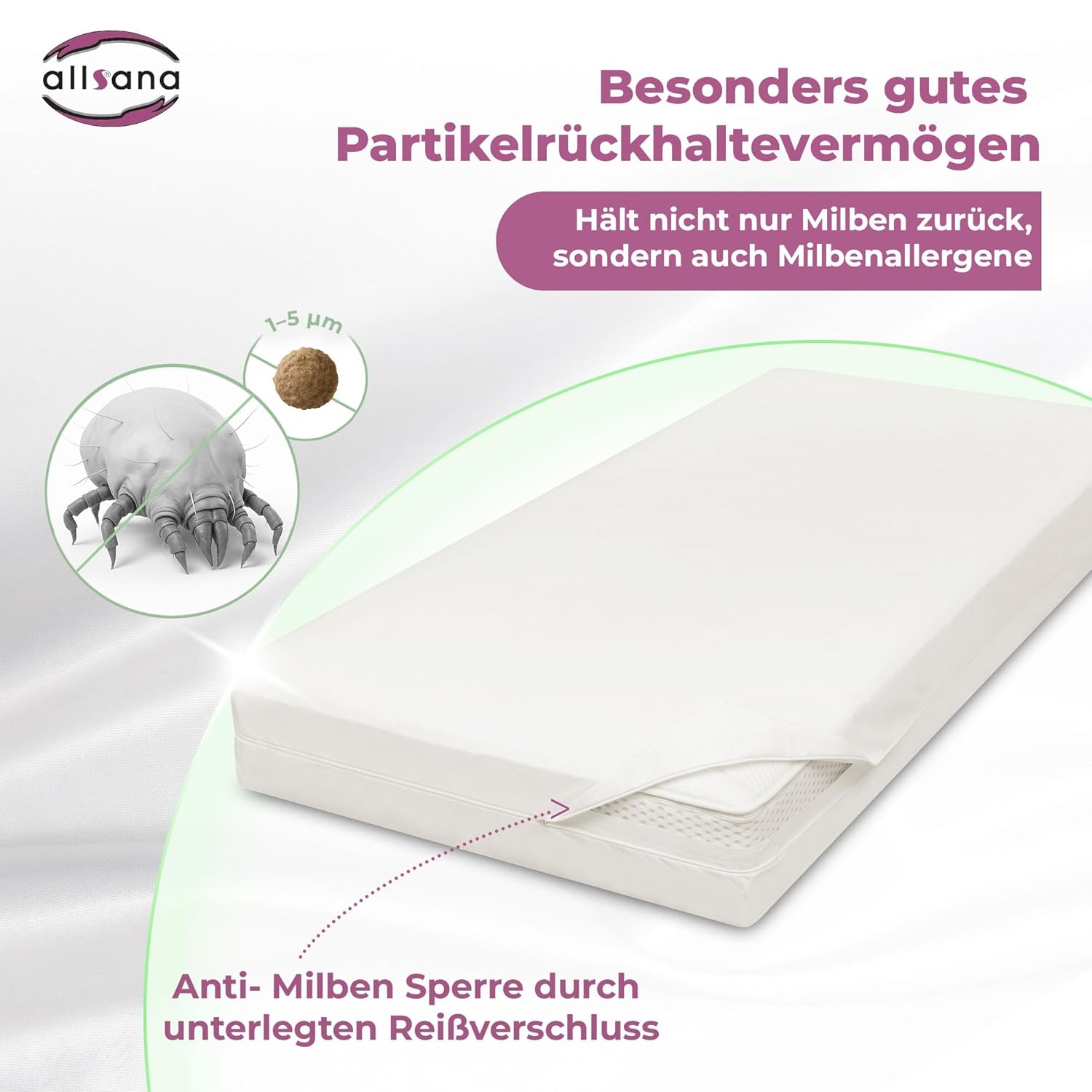 Schlafen Sie endlich beschwerdefrei – der Allsana Allergy Matratzenschoner schützt Sie zuverlässig vor Hausstaubmilben und anderen Allergenen mit TÜV-geprüfter Sicherheit und höchster Partikelrückhaltung (1-5µm). Dank des atmungsaktiven, mehrfach getesteten Mikrofleece-Materials aus der EU genießen Sie optimalen Schlafkomfort ohne chemische Behandlung – ideal für Allergiker und empfindliche Haut. Der 2-seitige Reißverschluss mit Sicherheitsklappe schließt milbendicht ab…