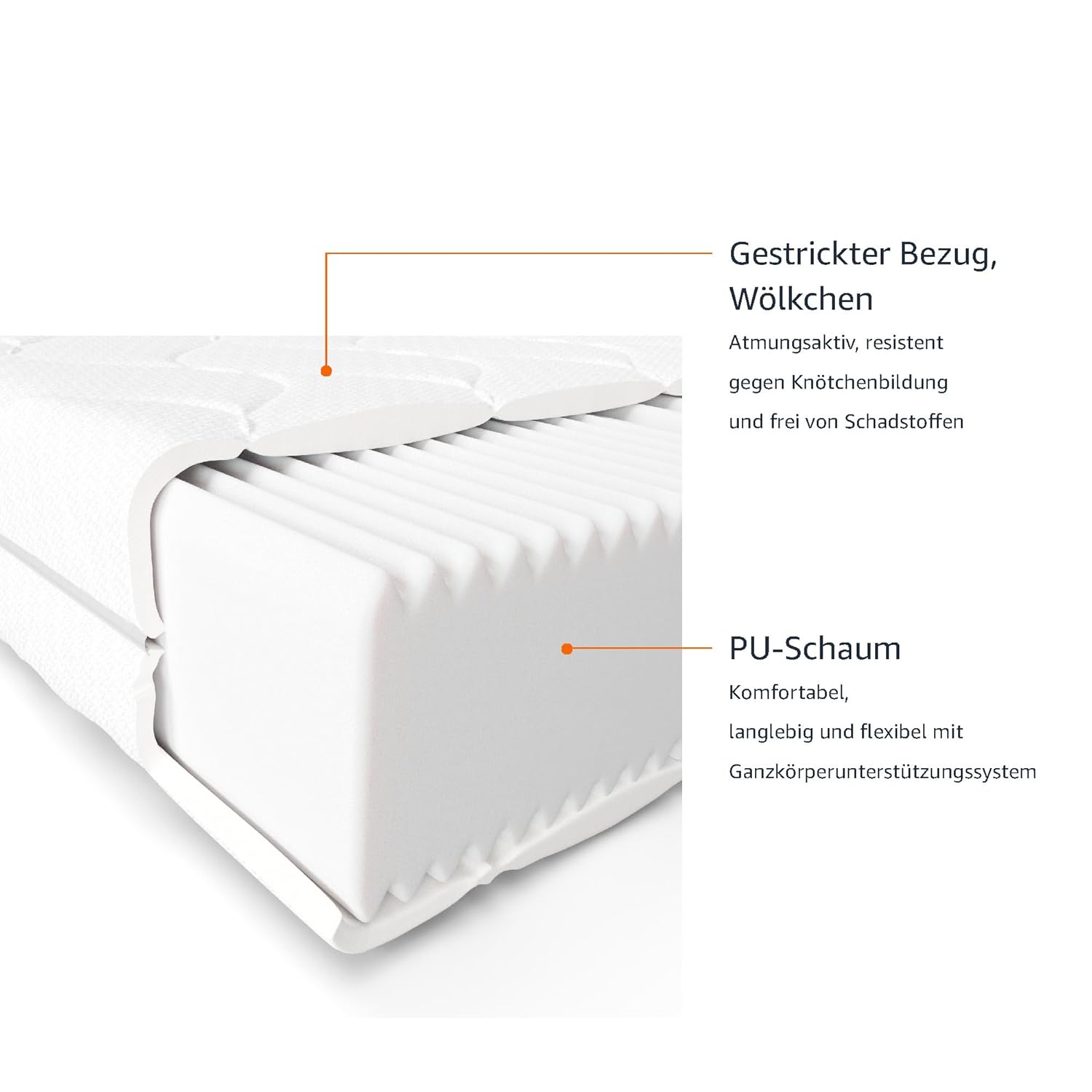 - Material Kern: 100 % Polyurethan-Schaumstoff