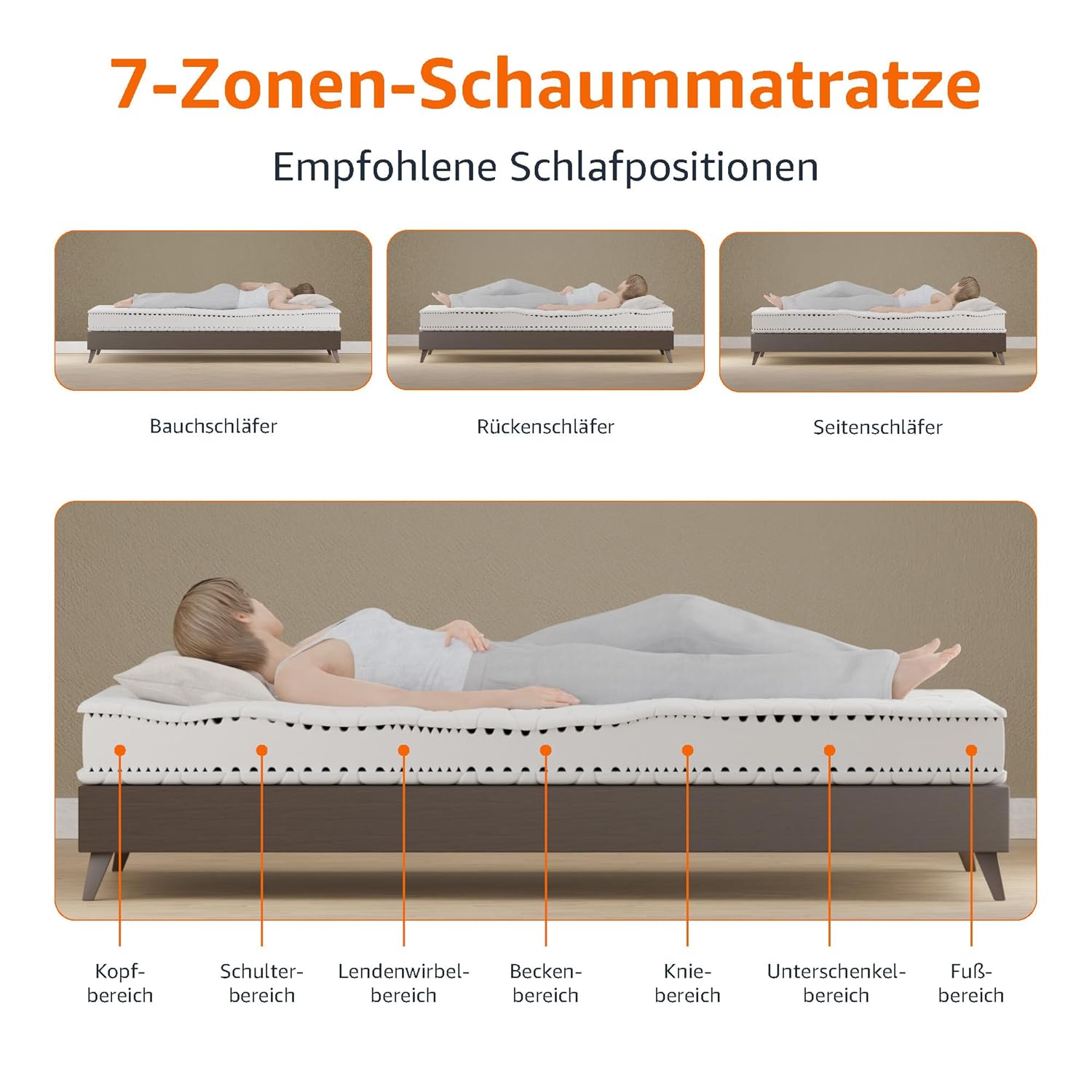 - 7-Zonen-System für optimale Körperunterstützung und natürliche Wirbelsäulenlage