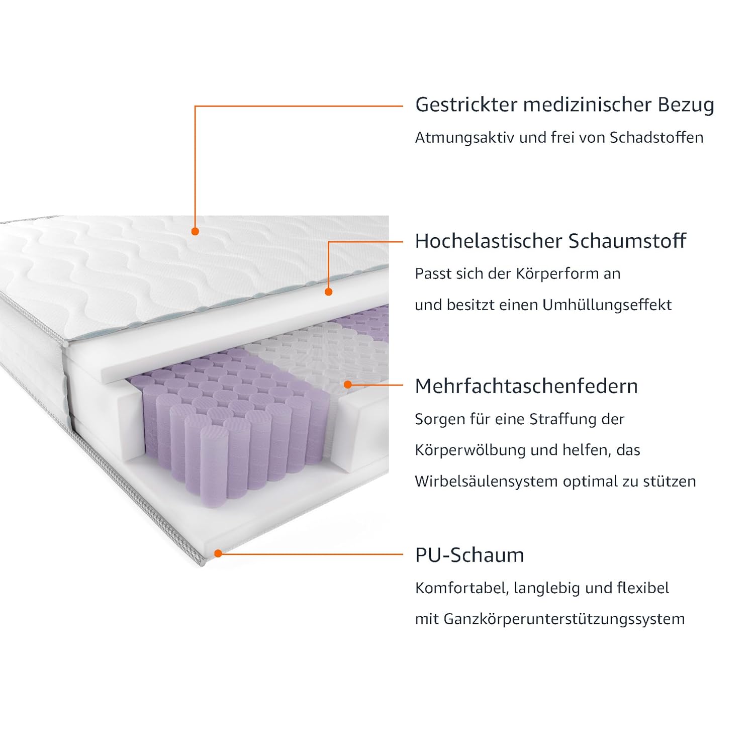 Amazon Basics Pocket Sprung 7-Zonen Matratze – Mittelfeste Unterstützung für erholsamen Schlaf und optimale Körperanpassung