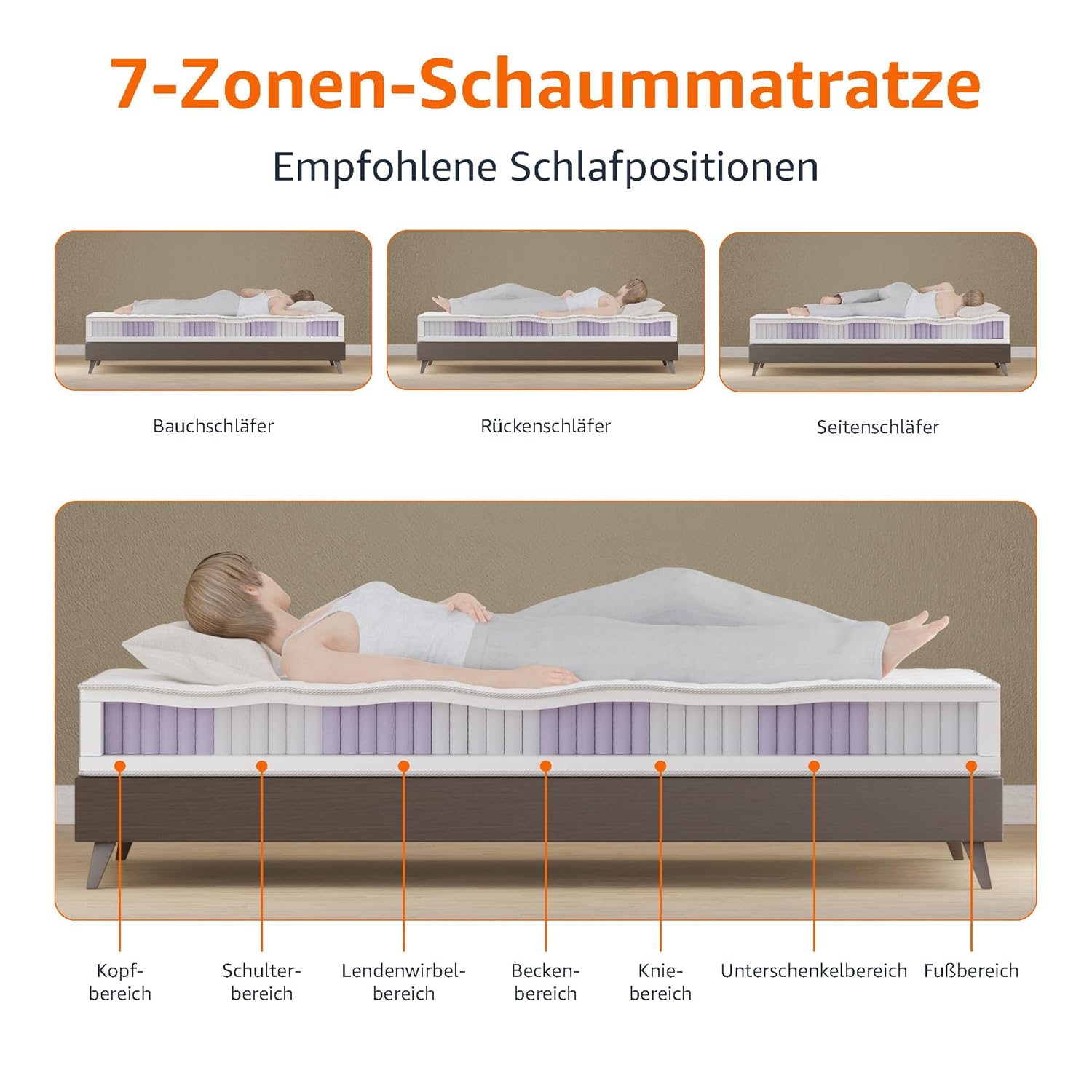In einer Welt, in der Erholung immer seltener wird, verdient Ihr Schlaf ein Zuhause, das jeden Muskel entlastet, jede Wirbelsäule stützt und jede Nacht in einen wahren Erholungsraum verwandelt. Die Amazon Basics Pocket Sprung 7-Zonen Matratze in der mittelfesten H3-Ausführung ist nicht einfach nur eine Matratze – sie ist ein durchdachtes Schlafsystem, entwickelt für Menschen, die Wert auf langanhaltende Qualität, gesunden Schlaf und individuelle Körperanpassung legen. Mit ihren exakt 520 unabhängig voneinander arbeitenden Tonnentaschenfedern und einem intelligenten 7-Zonen-Unterstützungssystem passt sich diese Matratze millimetergenau an die Körperform an und sorgt dafür, dass jede Schlafposition – ob Rücken-, Seiten- oder Bauchlage – optimal unterstützt wird. Besonders Paare mit unterschiedlichem Körpergewicht profitieren von der geringen Bewegungsübertragung: Wenn sich Ihr Partner dreht, bleiben Sie ungestört in Ihrem Tiefschlaf.