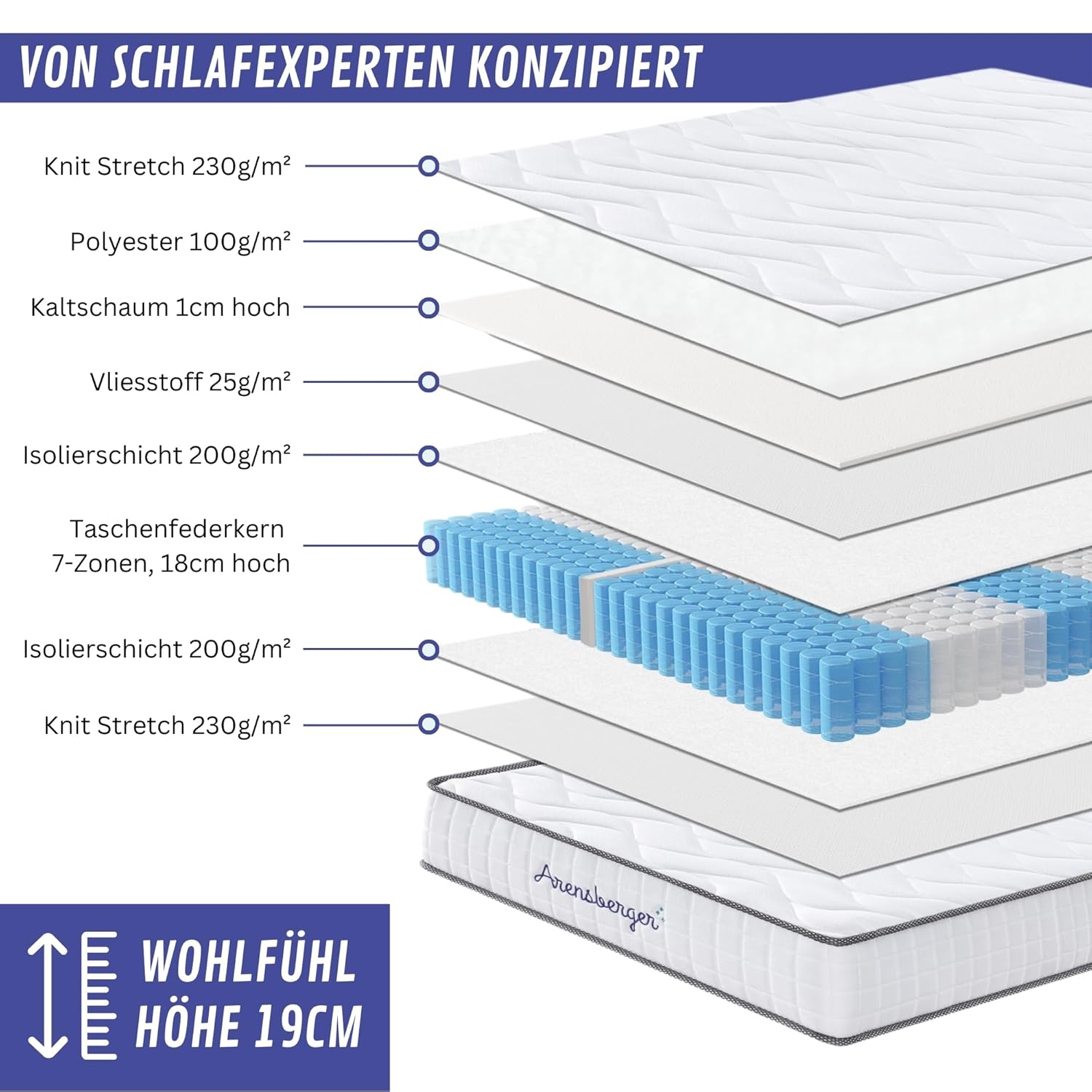Arensberger JANA Matratze 160 x 200 cm – Die perfekte Symbiose aus Ergonomie, Komfort und langer Haltbarkeit für einen erholsamen Schlaf von höchster Qualität