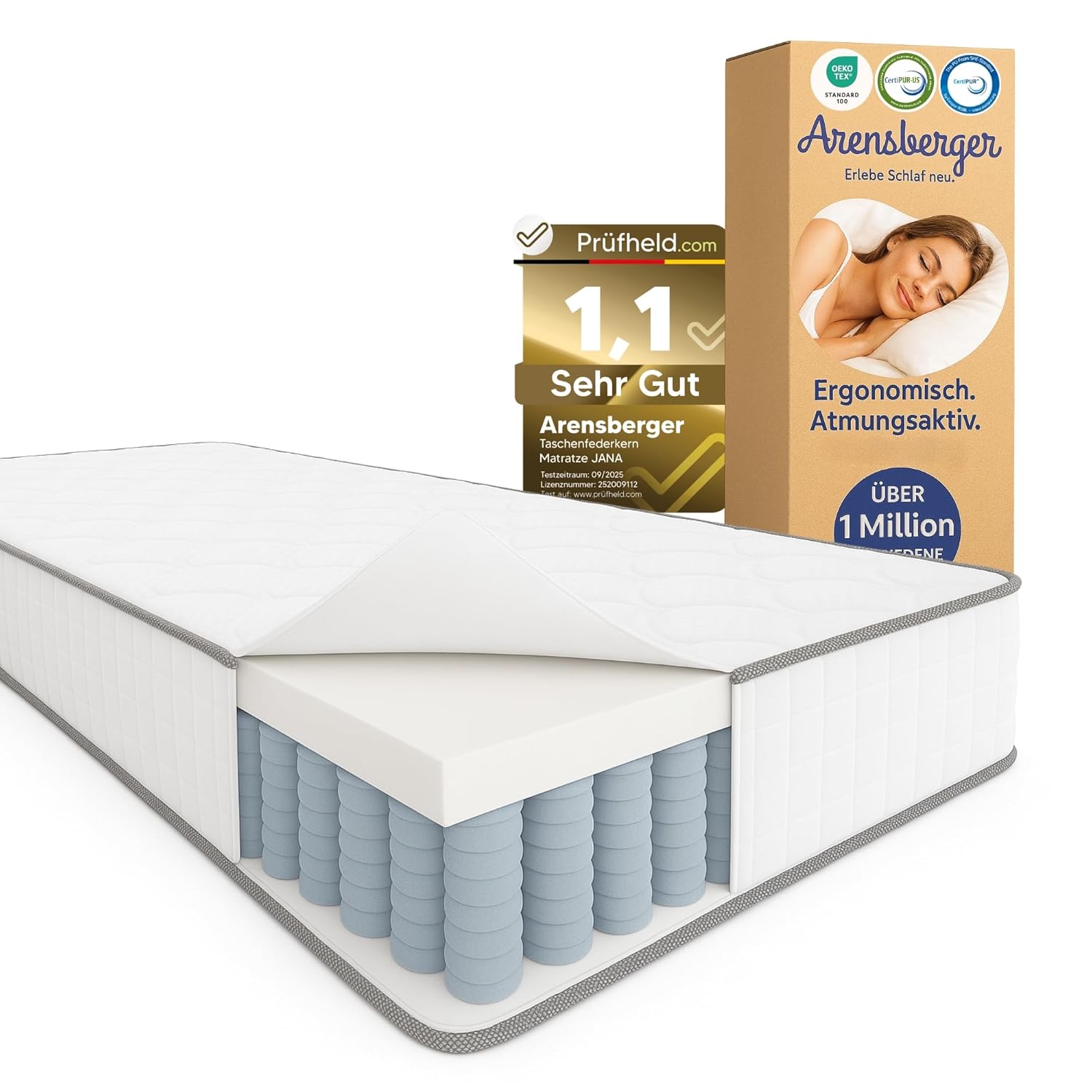 Arensberger steht seit 2004 für durchdachte Schlafsysteme, die den Ansprüchen moderner Lebensweisen gerecht werden. Die JANA Matratze wird nach strengen europäischen Qualitätsstandards produziert und unterliegt mehreren Kontrollgängen, bevor sie den Hersteller verlässt. Jede Matratze durchläuft eine Reihe von Belastungstests, um Formstabilität, Federwirkung und Haltbarkeit zu prüfen.