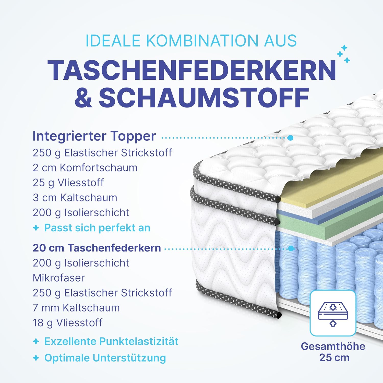 • Schichten: 6 funktionale Schichten + integrierter Topper
