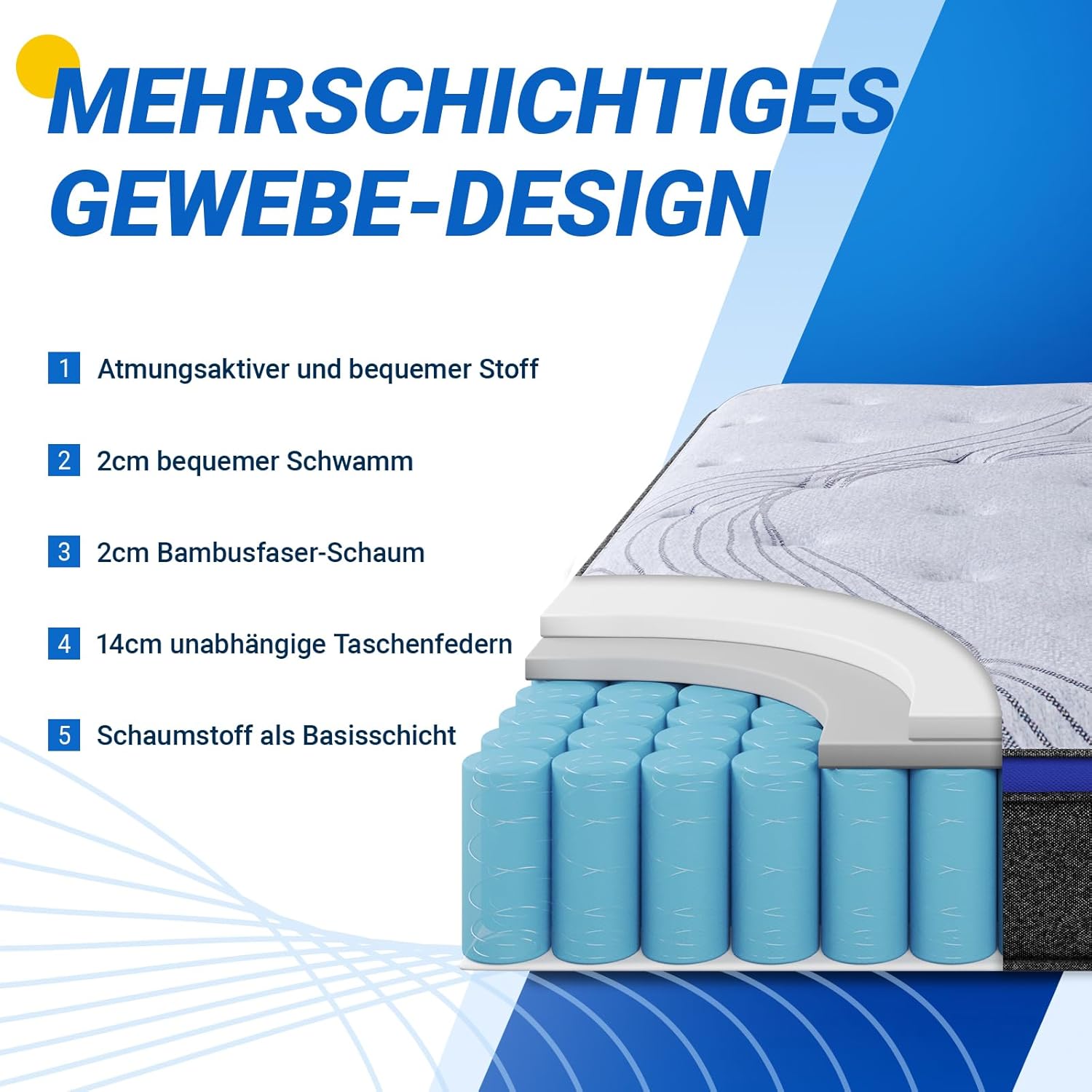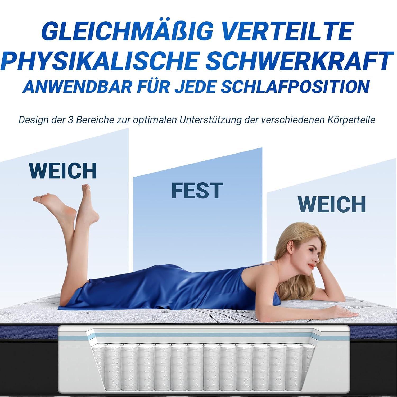 - Avenco 3-Zonen Taschenfederkernmatratze 160×200 H3