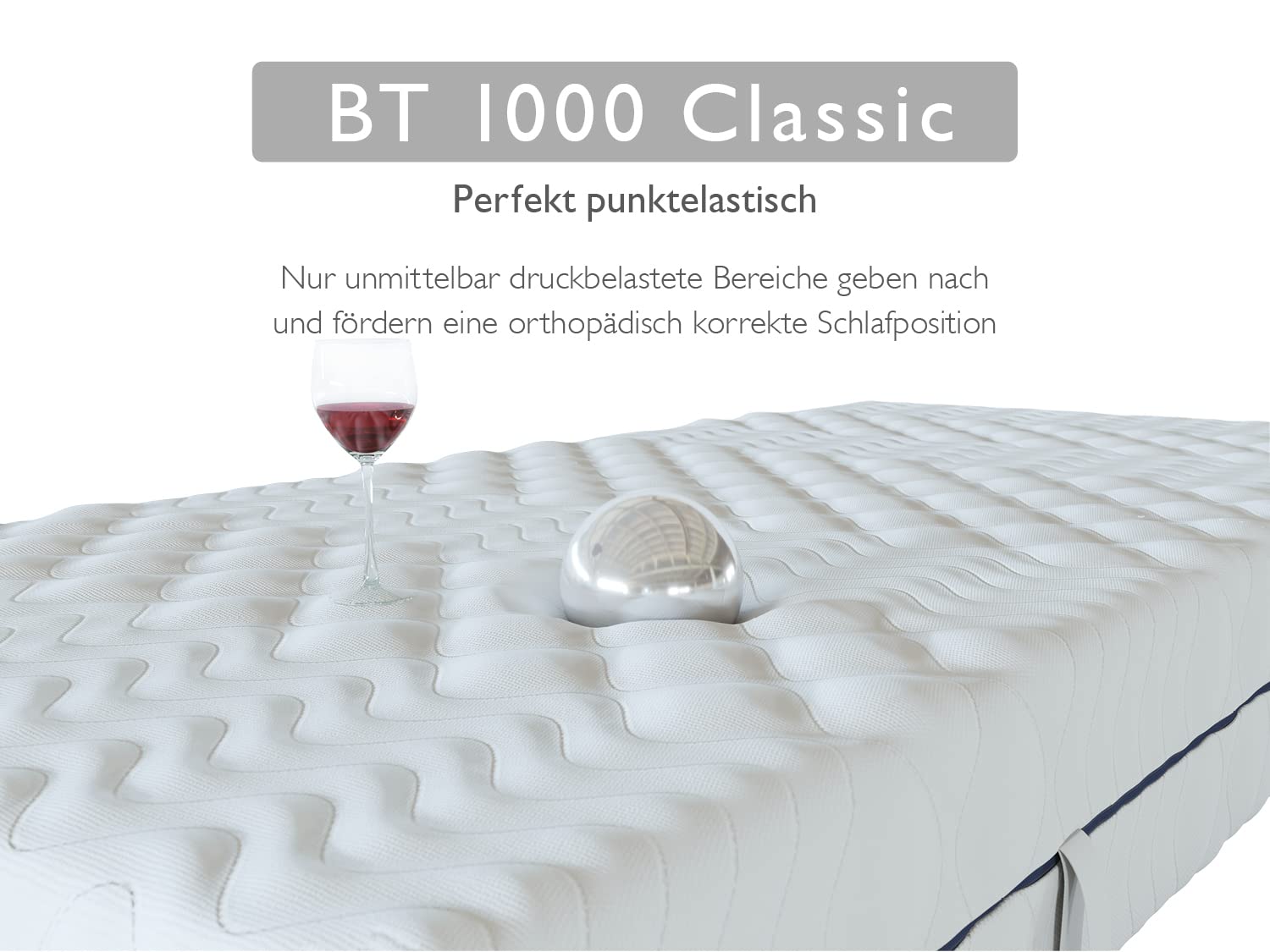 Besonders bemerkenswert ist die langfristige Wirksamkeit dieser Zoneneinteilung. Im Gegensatz zu durchgehend gleichförmigen Matratzen federt die BT1000 gezielt dort nach, wo der Körper es braucht, und bleibt stabil dort, wo Stütze erforderlich ist. Das Ergebnis ist ein Liegegefühl, das sich Tag für Tag frisch und stützend anfühlt – ohne das typische „Einsinken“ in der Mitte, das viele Matratzen nach wenigen Monaten entwickeln.
