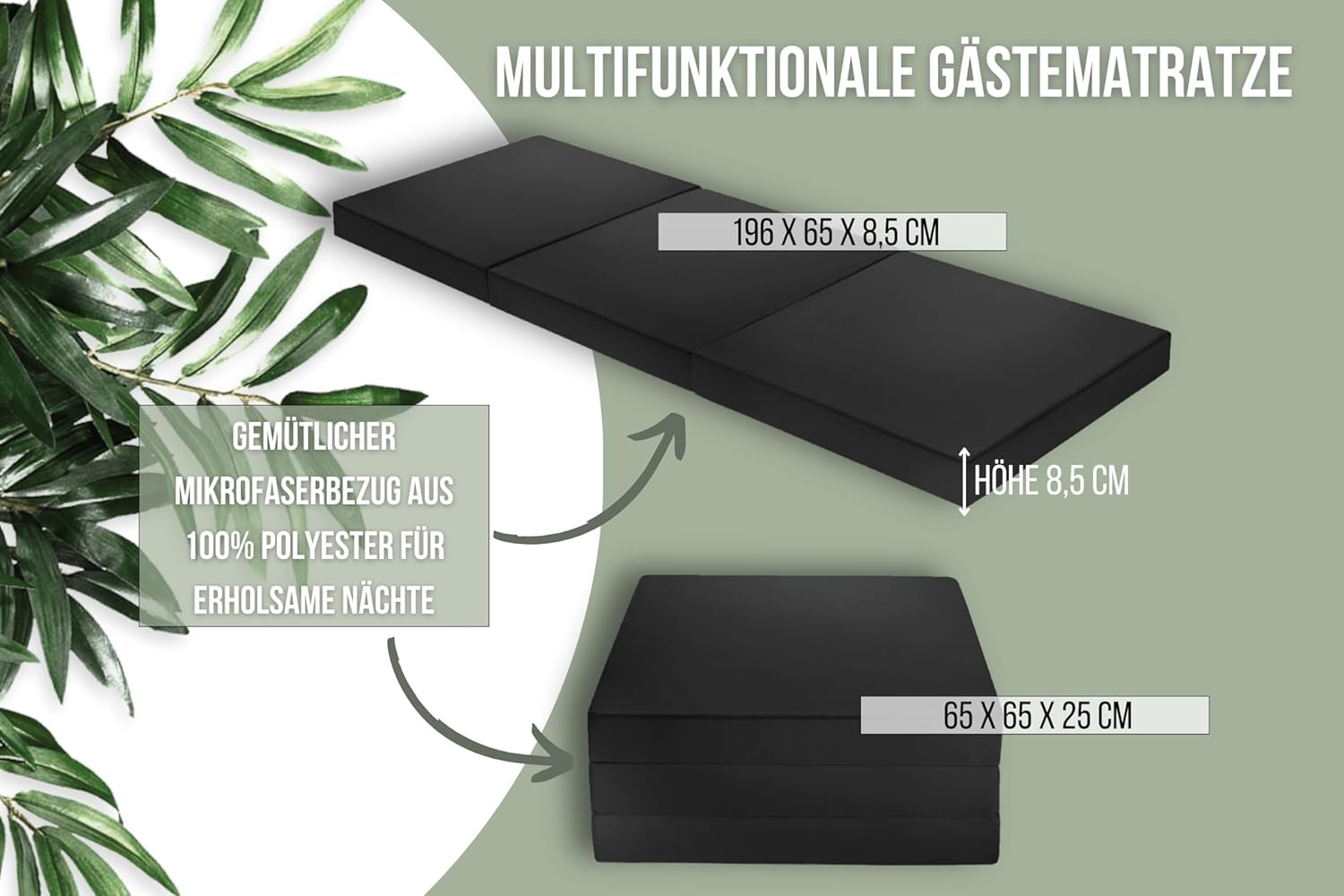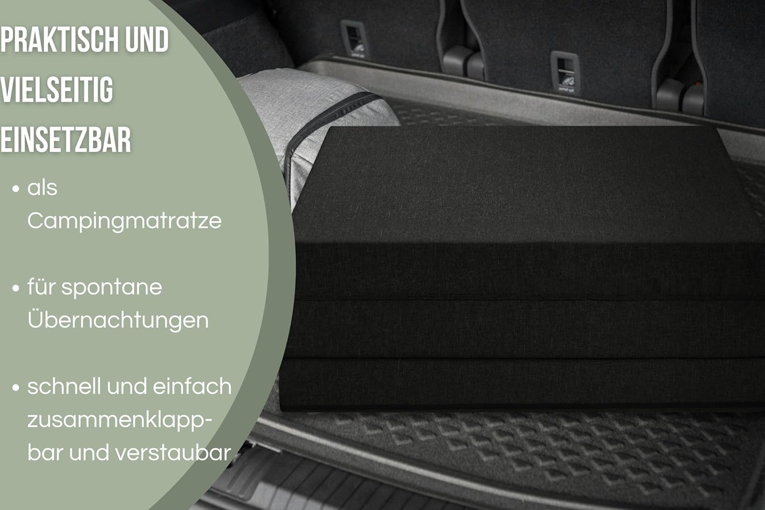 - 3-teilige Faltmatratze für maximale Flexibilität und platzsparende Aufbewahrung