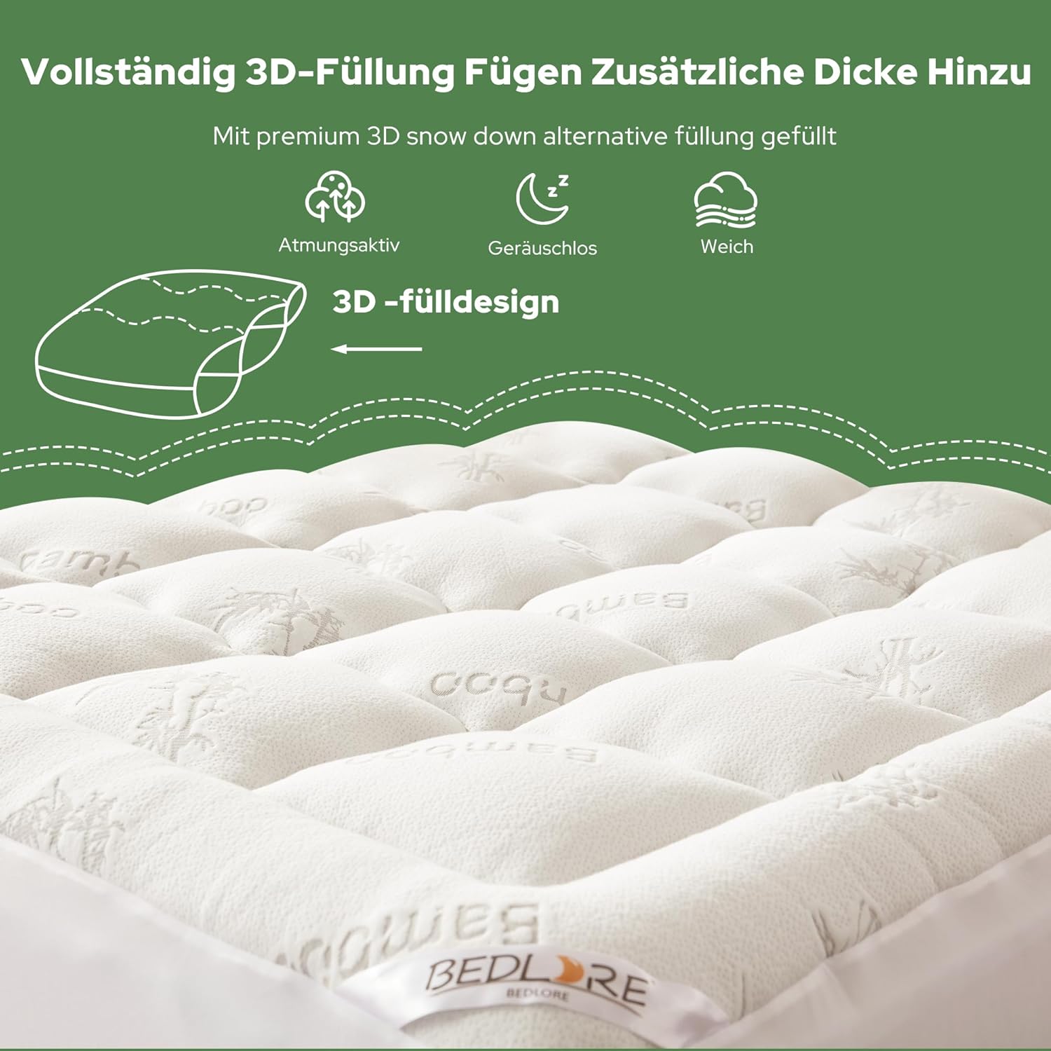 BEDLORE Mattress Topper 140 x 200 cm – Der luxuriöse Schlafkomfort aus Bambus-Viskose für erholsame Nächte und schmerzfreie Morgen