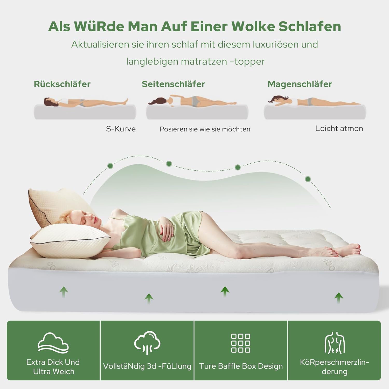 Stellen Sie sich vor, Sie kommen nach einem langen, anstrengenden Tag nach Hause, legen sich ins Bett – und spüren sofort eine sanfte, umhüllende Wärme, die Ihren Körper wie von selbst entspannt. Kein Druck auf die Gelenke, kein unangenehmes Schwitzen, kein unruhiges Wälzen in der Nacht. Der BEDLORE Mattress Topper schafft genau dieses Gefühl: eine harmonische Balance aus Stütze, Weichheit und Klimakomfort, die Ihren Schlaf auf ein neues Niveau hebt. Besonders für Menschen mit empfindlichem Rücken, Schulterproblemen oder Schlafstörungen wird dieser Topper zu einem unverzichtbaren Begleiter.
