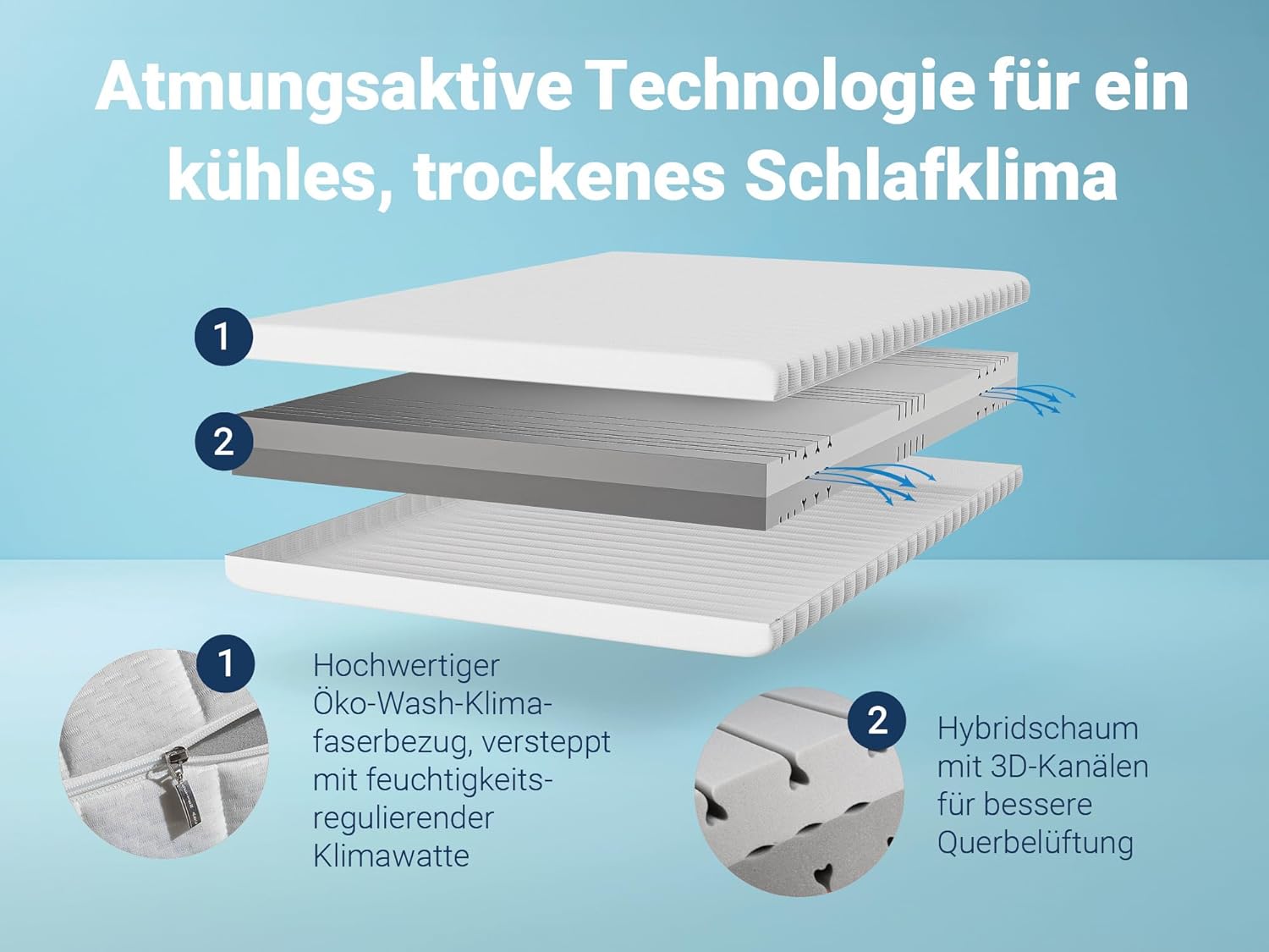 • Material: Hybrid-Schaumstoff (Kaltschaum + Klimabaumwolle)