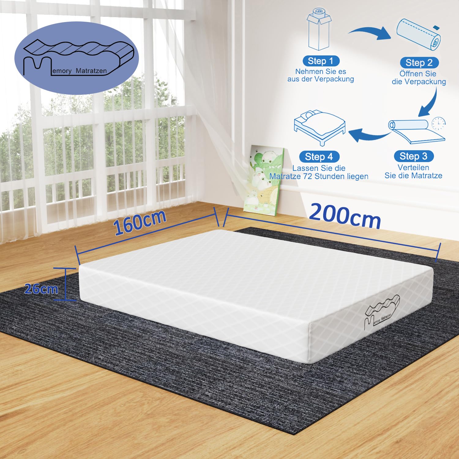 • Maße: 160 x 200 x 26 cm – ideale Größe für Doppelbetten und Einzelbetten mit großzügiger Liegefläche