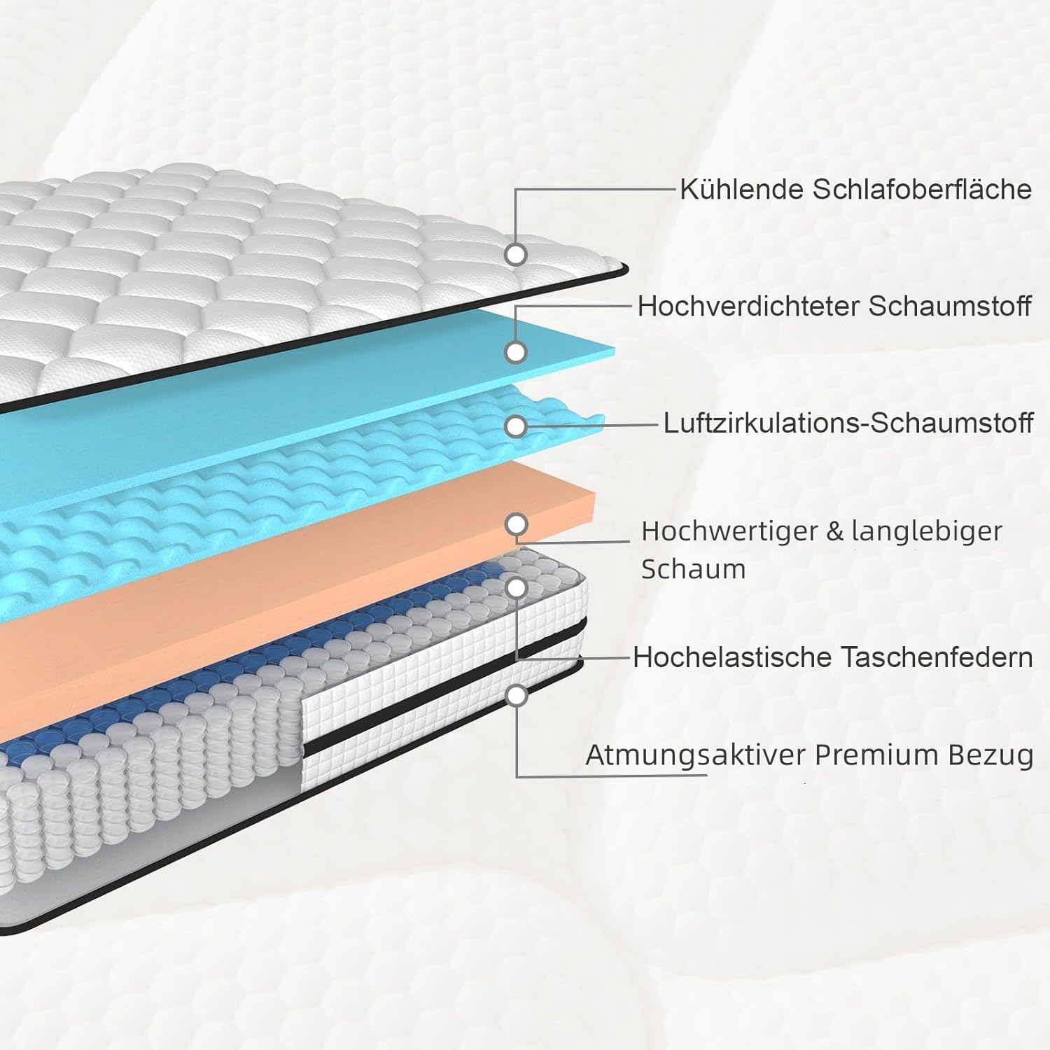 - Kern: Taschenfederkern mit 7-Zonen-Technologie