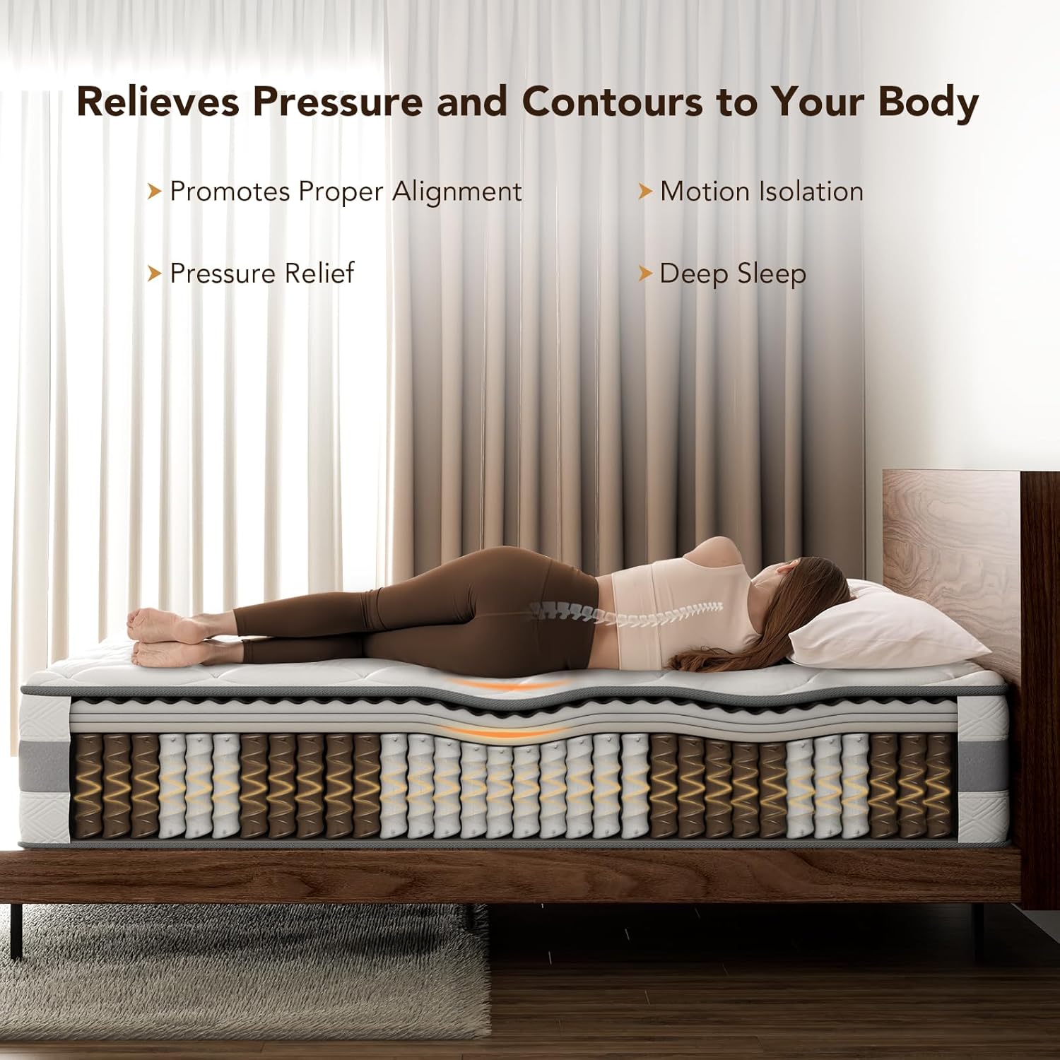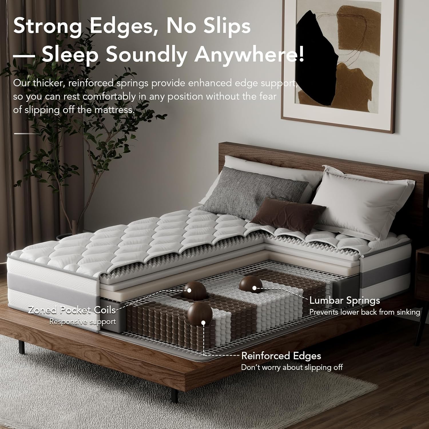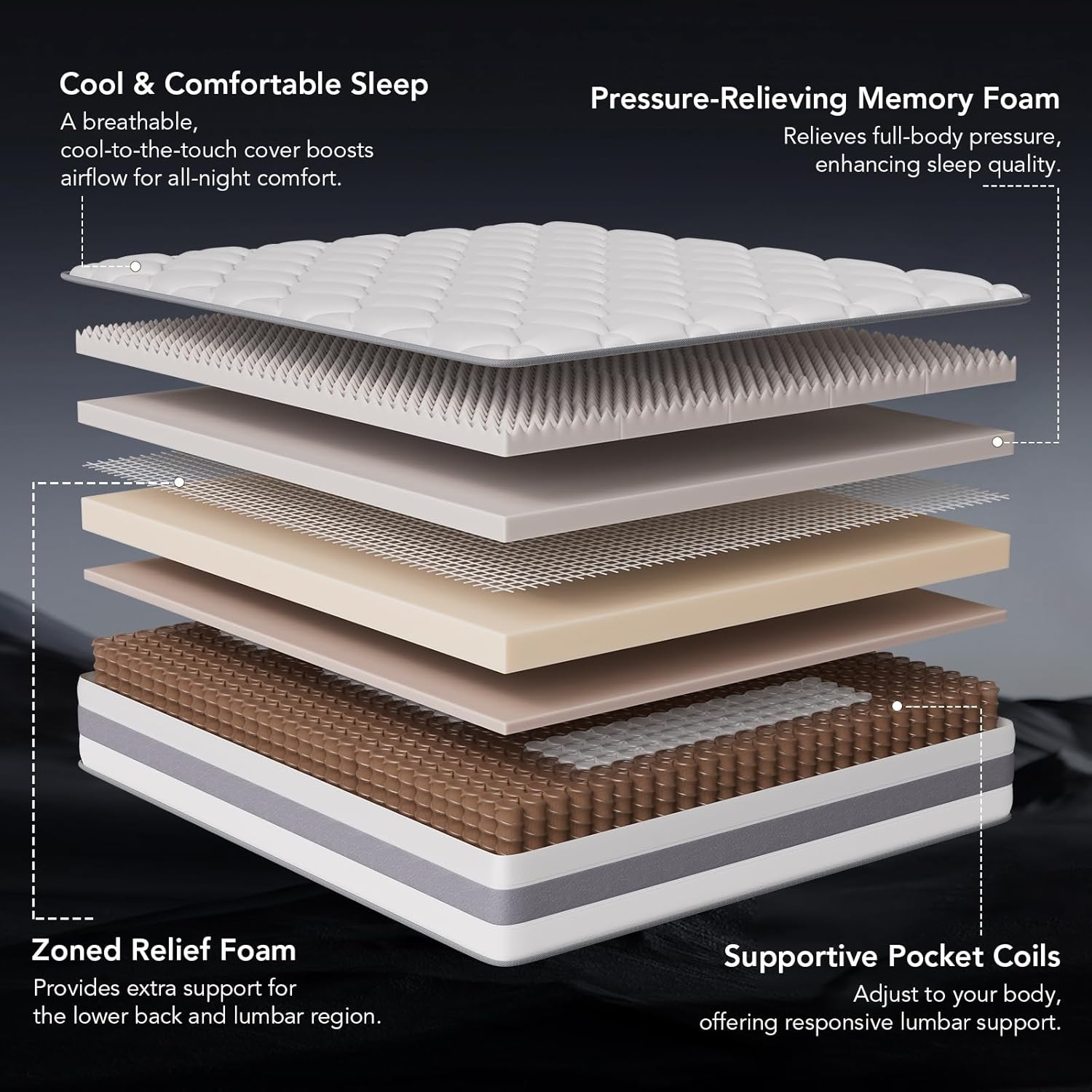 HOMAVO 160 x 200 cm Hybrid-Matratze mit 7-Zonen-Taschenfederkern – Die perfekte Symbiose aus orthopädischer Stützkraft und anschmiegsamem Memory Foam