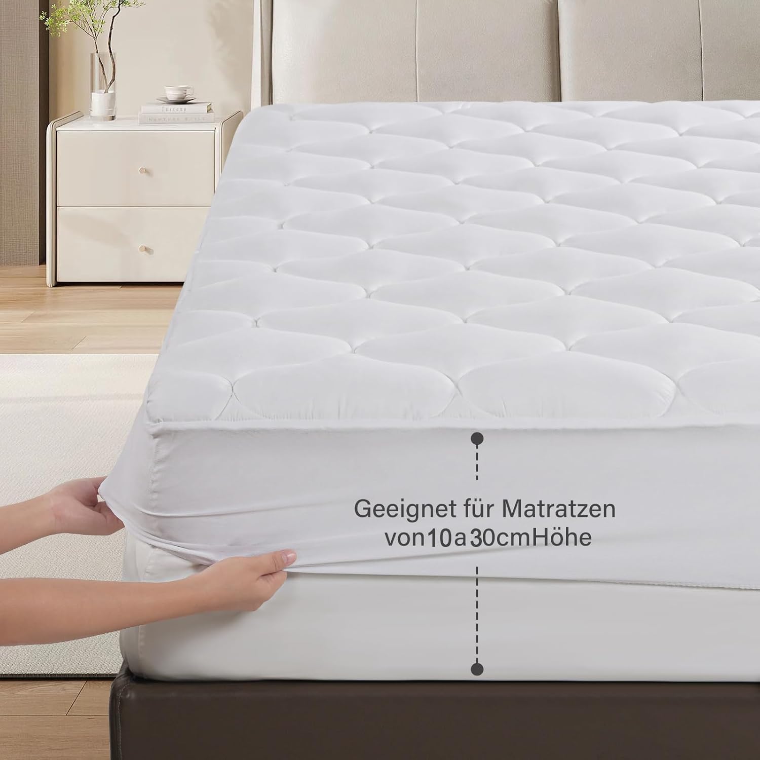 Nicht jede Matratzenauflage passt zu jeder Matratze – bis jetzt. Die DUANDUAN Matratzenauflage überzeugt durch ihr intelligentes Befestigungssystem mit 360-Grad-Dehnbündchen, die sich mühelos über Matratzen von 10 bis 30 cm Dicke spannen. Ob klassische Federkernmatratze, dicke Kaltschaum-Matratze, Wasserbett oder viscoelastische Memory-Foam-Matratze – diese Auflage sitzt absolut rutschfest und verrutscht auch bei unruhigem Schlaf nicht.
