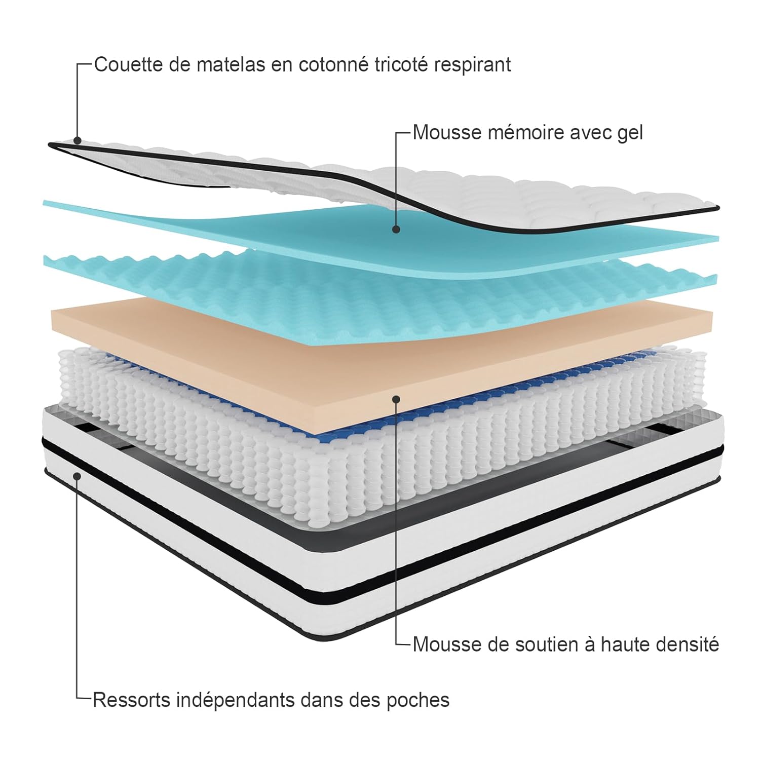 - Oberste Schicht: 4 cm Gel-Memory-Foam (40 kg/m³)