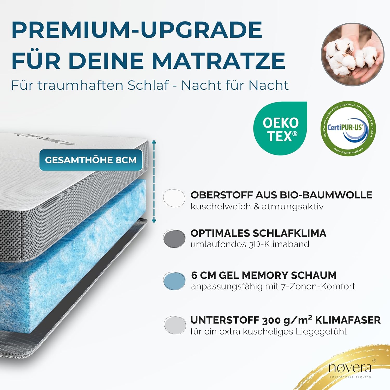 Der Deluxe Gel Topper 160 x 200 cm High RG 50 von nøvera ist mehr als ein Schlafaccessoire – er ist ein Statement für bewussten, gesunden und erholsamen Schlaf. Für alle, die das Beste für sich und ihre Familie wollen, ist er die kluge Wahl – heute, morgen und in hunderten von Nächten, die noch kommen werden.