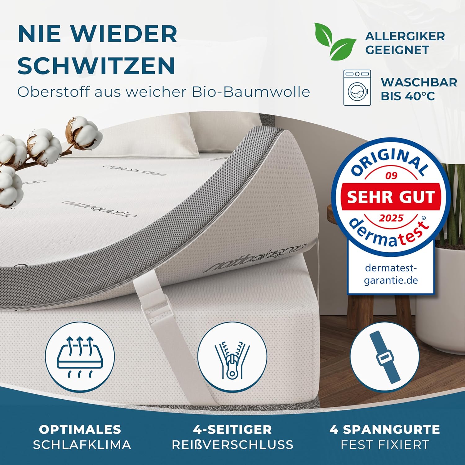 Ob Sie unter Rückenschmerzen leiden, sich nach besseren Schlafqualität sehnen oder einfach das Gefühl von Luxus im eigenen Schlafzimmer erleben möchten – dieser Topper ist die intelligente, nachhaltige und langfristig wirksame Lösung.