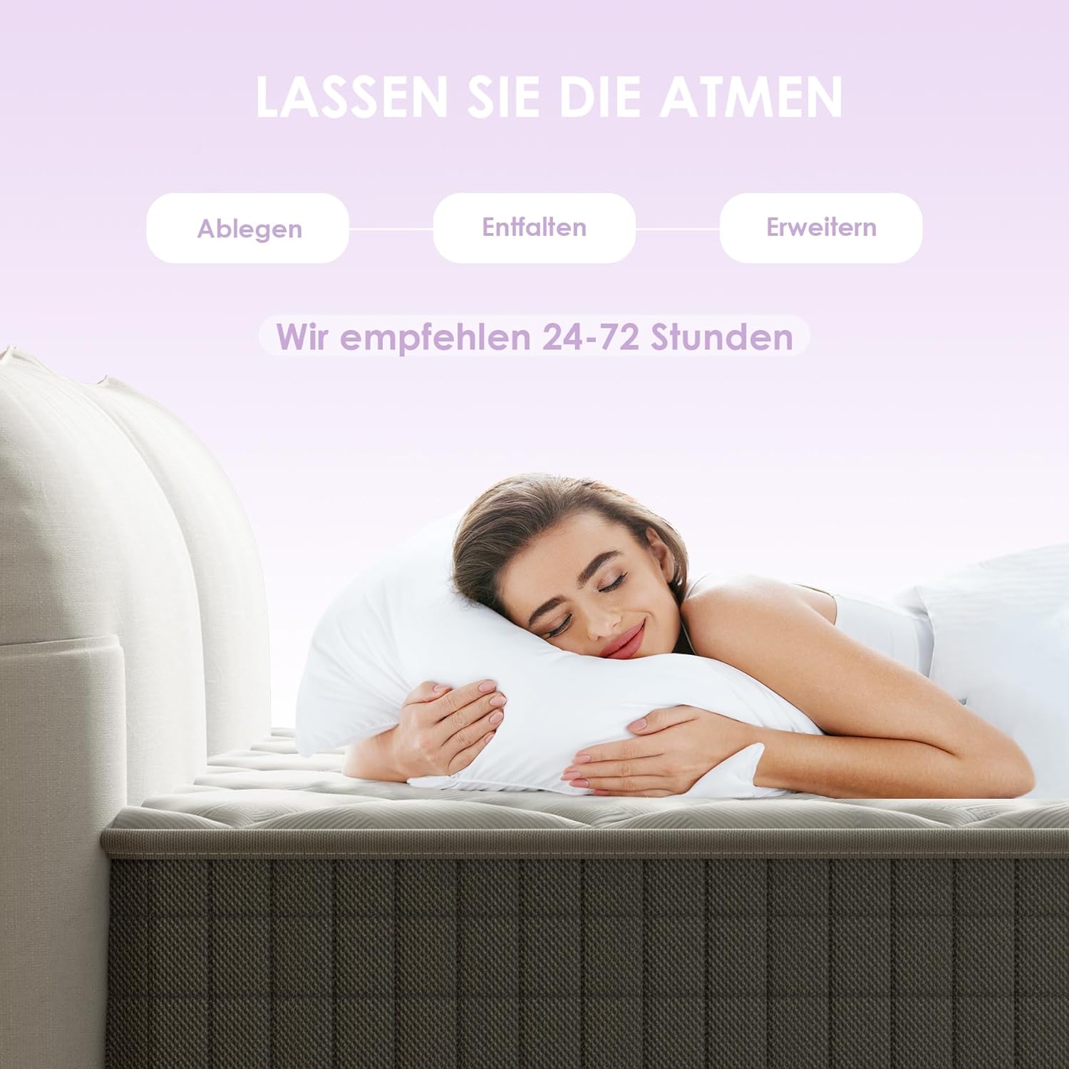 Die DEWINNER Matratze überzeugt nicht nur durch ihren Komfort, sondern auch durch ihre Benutzerfreundlichkeit. Die vakuumverpackte Lieferung ermöglicht einen mühelosen Transport – sogar durch enge Treppenhäuser oder Aufzüge. Sobald die Verpackung geöffnet ist, beginnt die Matratze sich langsam zu entfalten. Innerhalb von zwei bis drei Tagen hat sie ihre volle Form erreicht und ist einsatzbereit.
