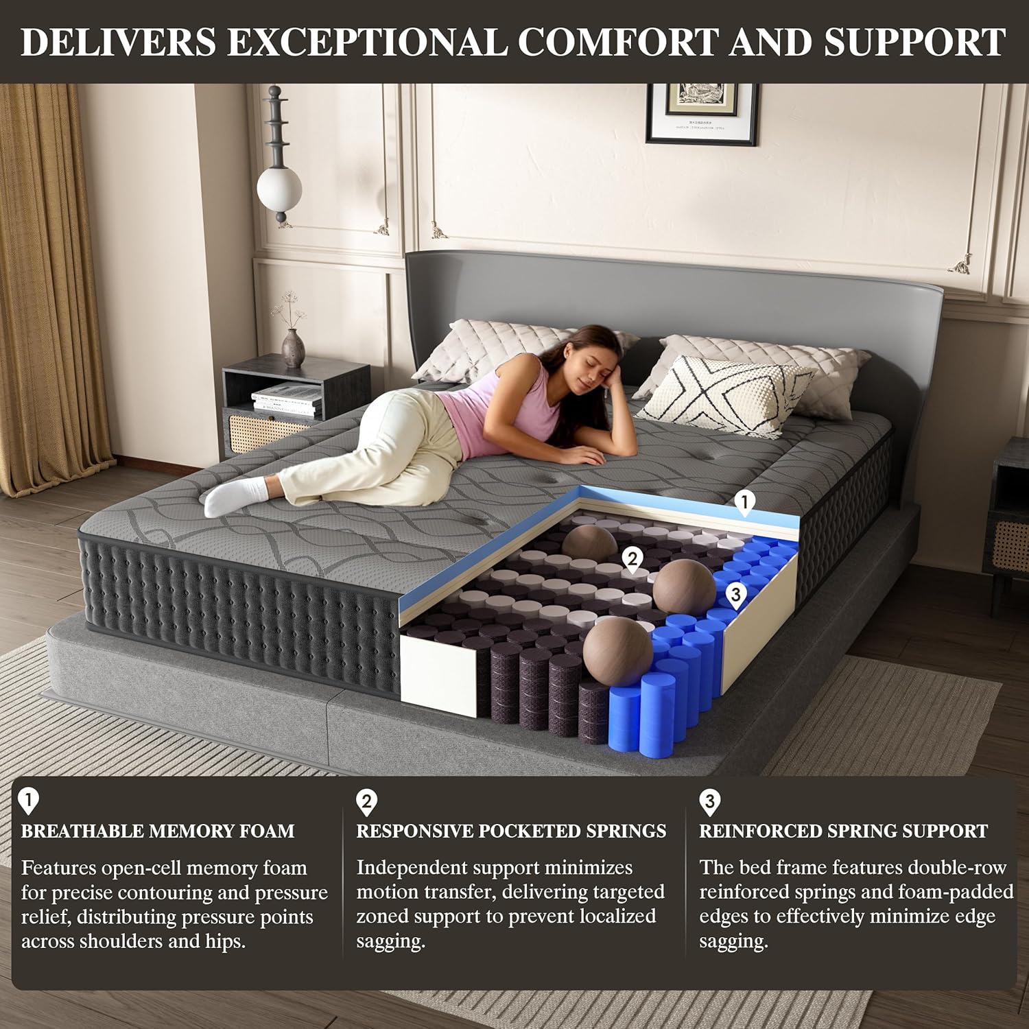 Ein häufiges Problem传统eller Federkernmatratzen ist das störende Quietschen bei jeder Bewegung – besonders lästig für Paare mit unterschiedlichen Schlafzyklen. Die DEWINNER Hybrid-Matratze löst dieses Problem grundlegend durch ihre ultraschalloptimierte Federkonstruktion. Jede der hochelastischen Einzeltaschenfedern ist einzeln in einem robusten, schwingungsdämpfenden Bezug eingehüllt, sodass sie völlig unabhängig voneinander arbeiten. Diese geschlossene Bauweise verhindert mechanische Reibung und eliminiert jegliche Geräuschentwicklung, selbst bei häufigen Positionenwechseln während der Nacht.