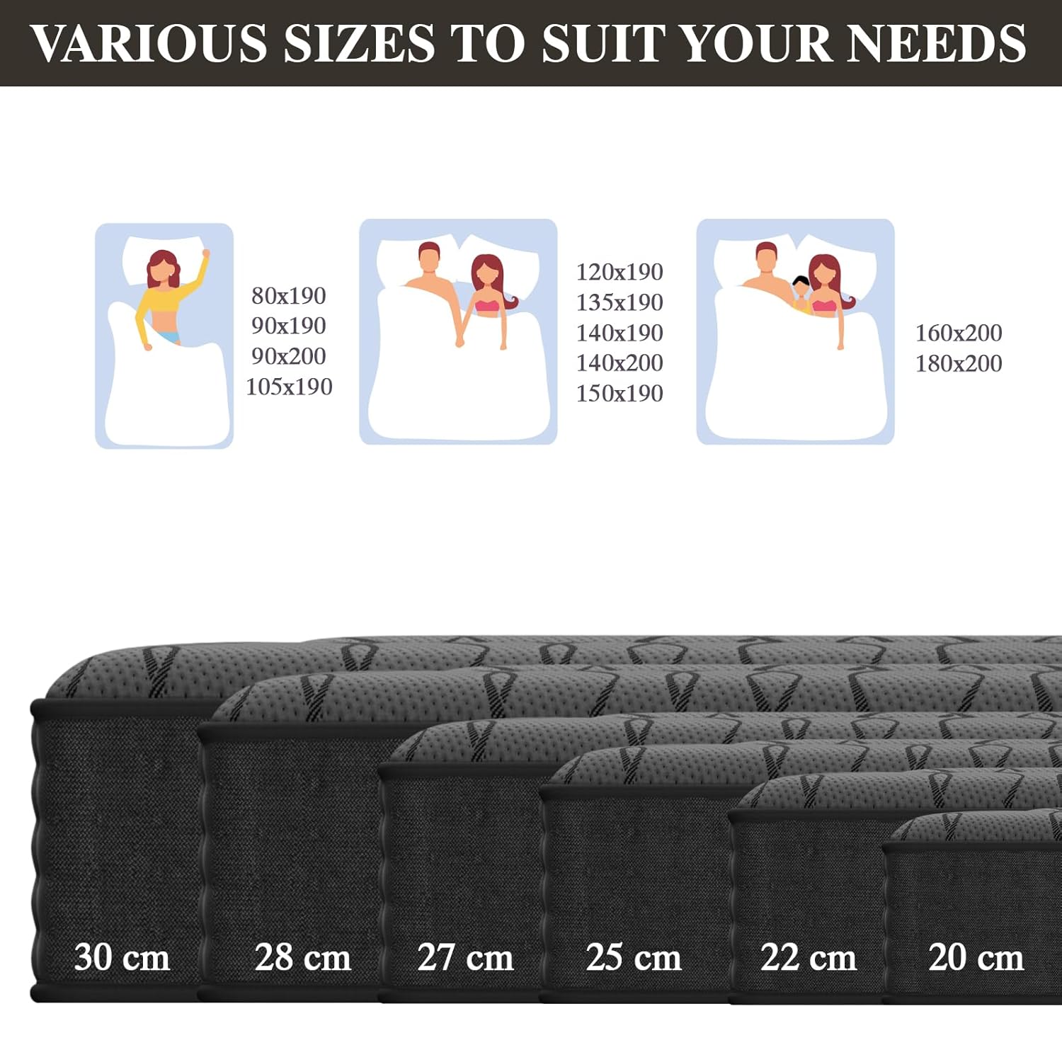In einer Welt, in der Hektik und permanente Reize unseren Alltag bestimmen, wird der erholsame Schlaf zum wertvollsten Gut. Die DEWINNER Hybrid-Matratze in den Maßen 160 x 200 cm und einer Höhe von 28 cm ist nicht einfach nur eine Matratze – sie ist ein durchdachtes Schlafsystem, das modernste Materialtechnologie mit ergonomischer Präzision verbindet. Entwickelt für Menschen, die Wert auf Ruhe, Komfort und Langlebigkeit legen, bietet diese Matratze eine neue Dimension des Schlafkomforts – besonders für Paare, die endlich wieder geräuschlos und ungestört durch die Nacht schlummern möchten.