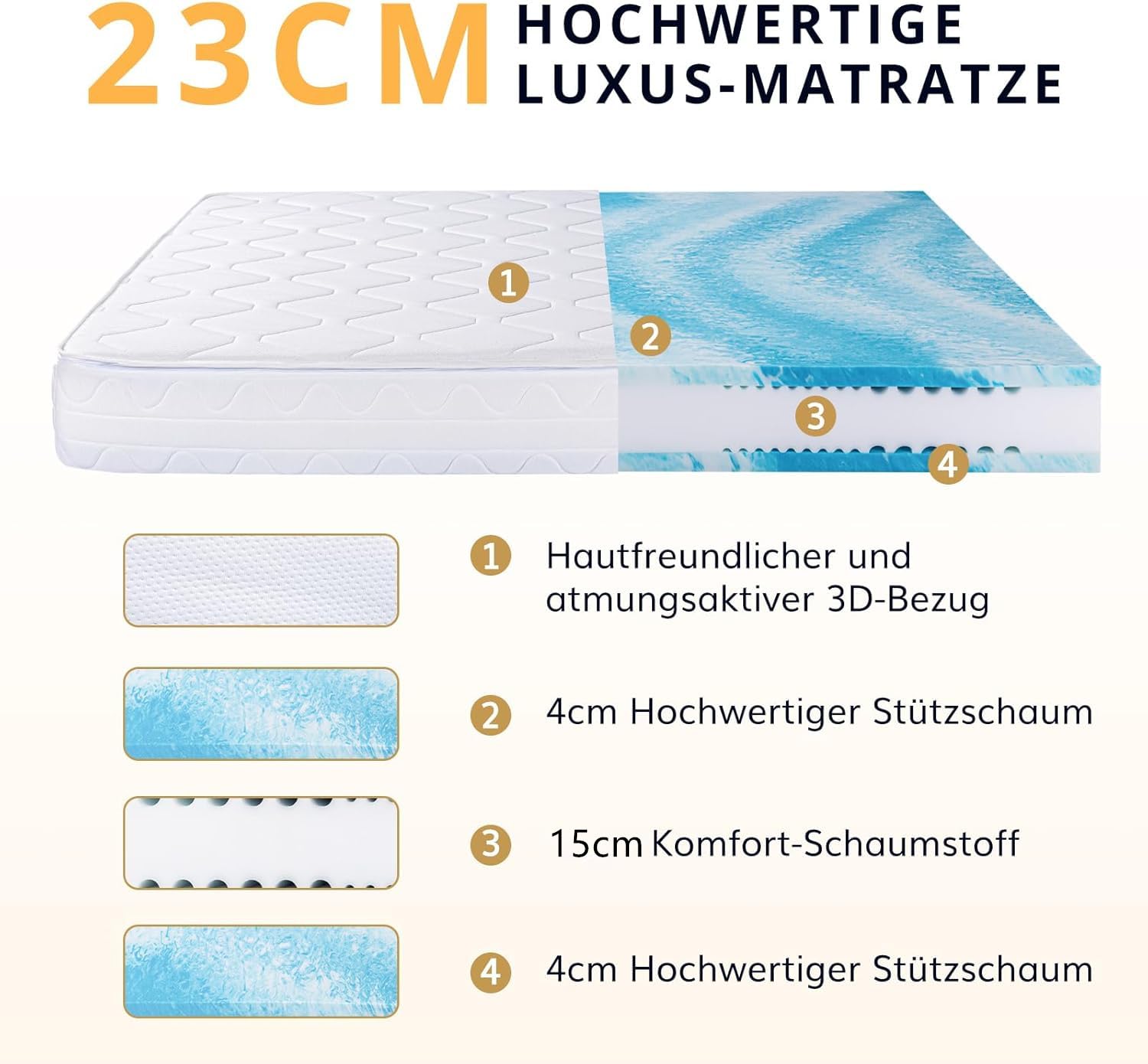 - 23 cm Gesamthöhe mit mehrschichtiger Schaumstruktur (40 kg/m³ + 25 kg/m³)
