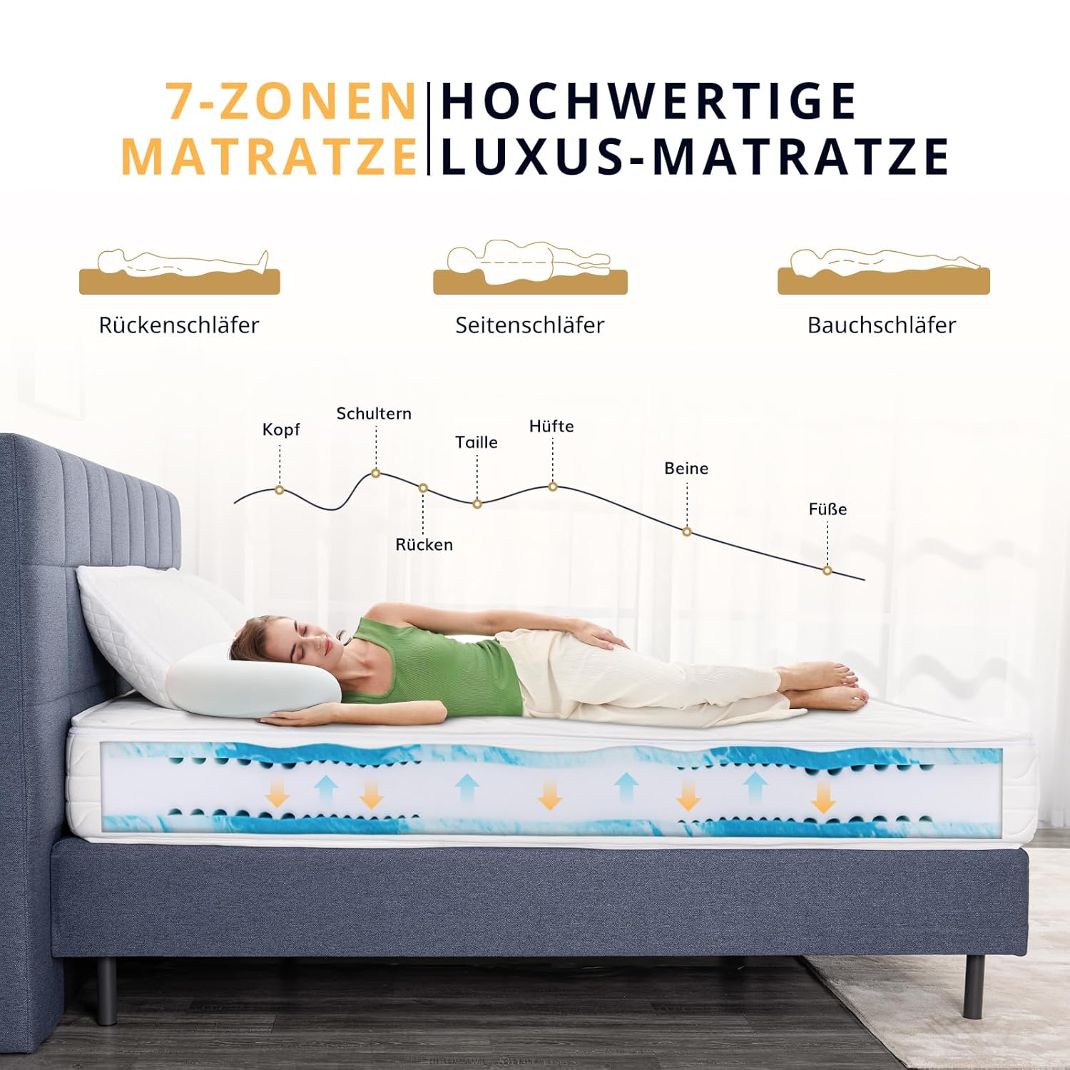 - 7-Zonen-Kaltschaummatratze für optimale Körperanpassung und Druckentlastung
