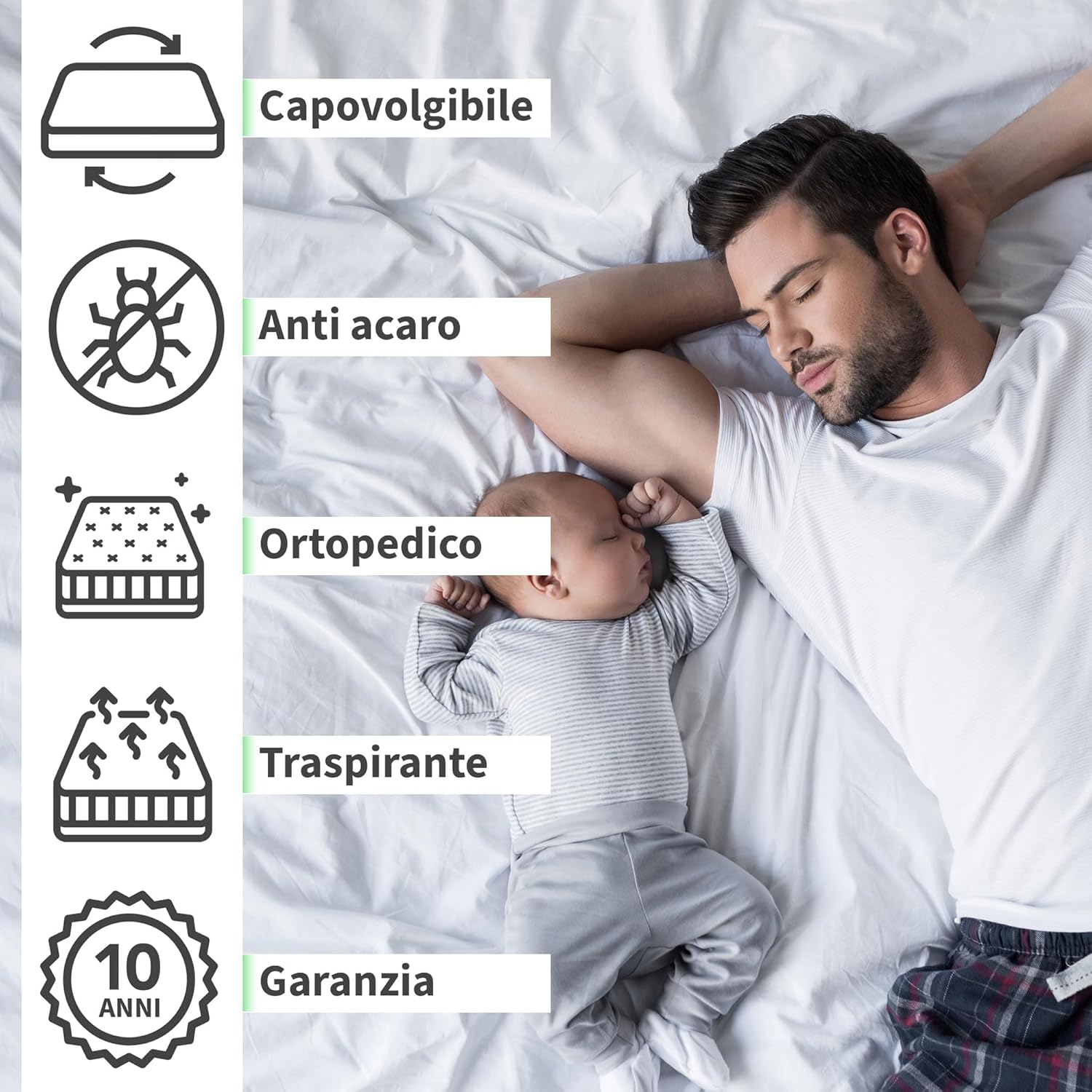Die Matratze ist außerdem schwer entflammbar und erfüllt die geltenden europäischen Brandschutznormen. Sie ist frei von FCKW, Formaldehyd und anderen schädlichen Chemikalien, was sie zu einer umweltfreundlichen Wahl macht. Die Produktion erfolgt in Italien unter fairen Arbeitsbedingungen und mit kurzen Transportwegen, was den ökologischen Fußabdruck reduziert.