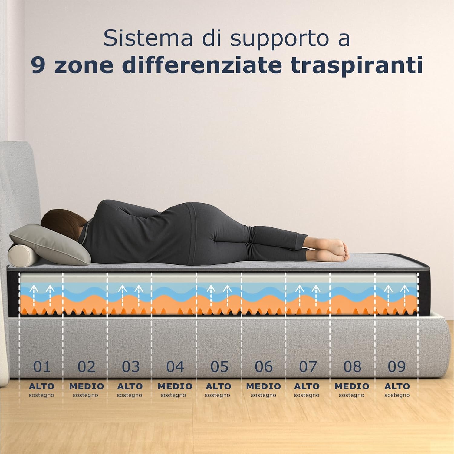 Fiocco Memory Matratze 160 x 200 cm – 20 cm Höhe, Made in Italy, Orthopädische Selbstanpassung für perfekten Schlafkomfort