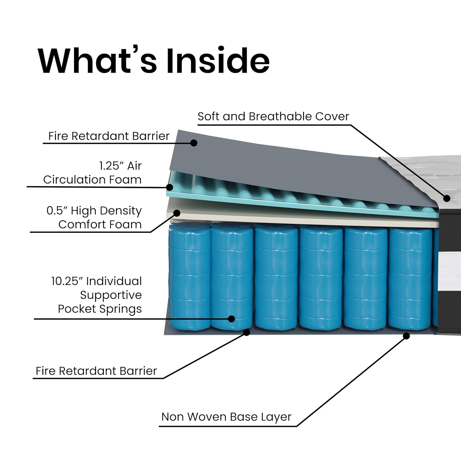 Erleben Sie den Unterschied, den eine durchdachte Schlafunterlage machen kann – mit der Flash Furniture Hybrid Pocket Spring Matratze starten Sie jeden Tag erholt, entspannt und voller Energie.