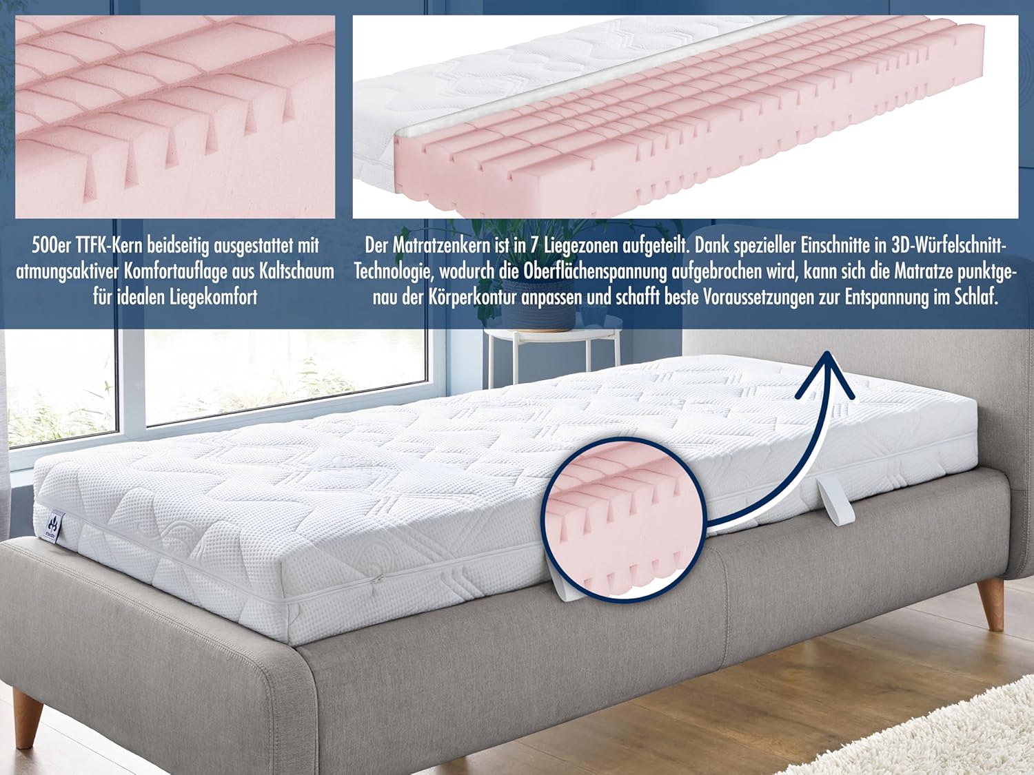 - 7-Zonen-Komfortschaumkern mit innovativer 3D-Cube-Cut-Technologie für optimale Punktelastizität