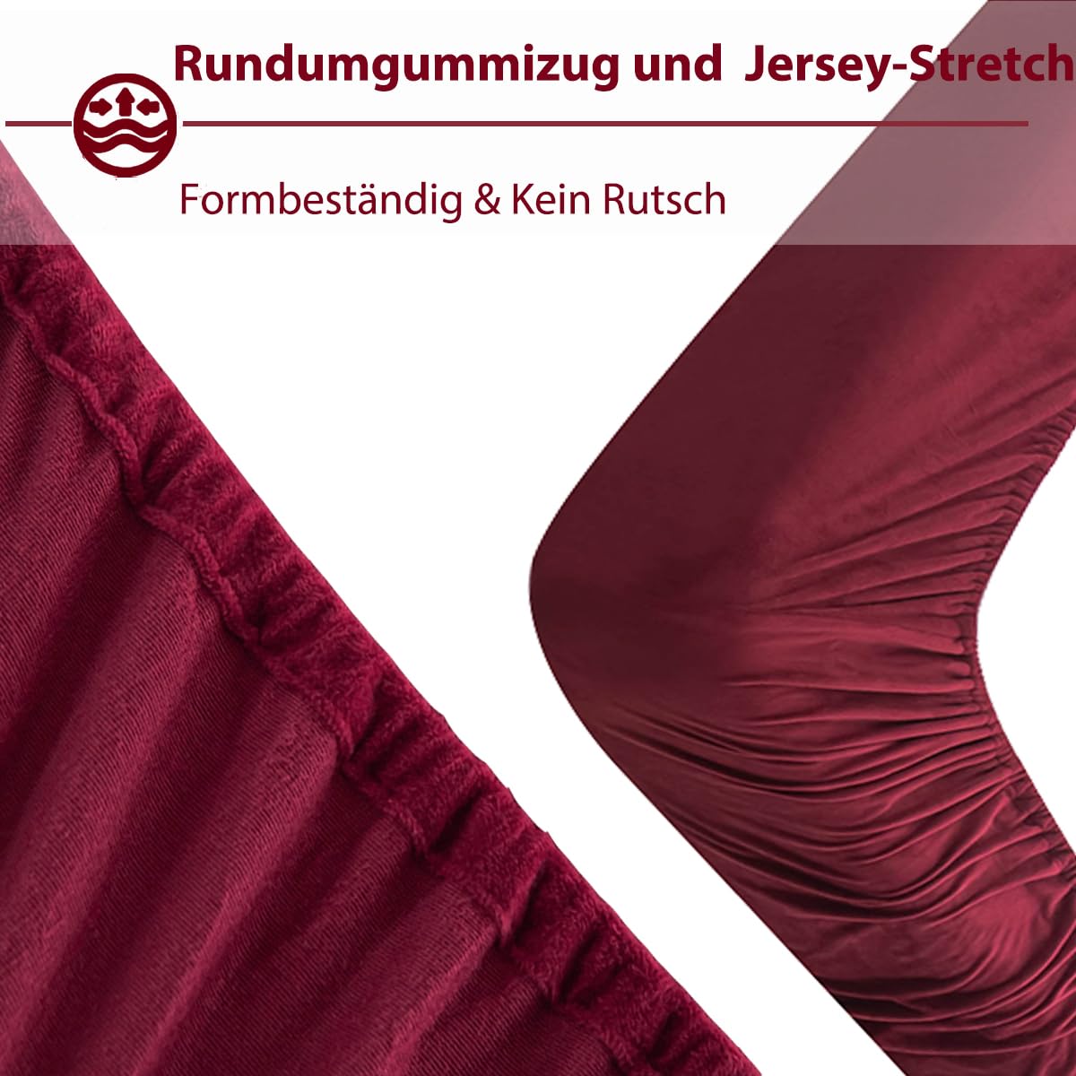 - Elastizität: 360° Gummizug + dehnbares Jersey-Material
