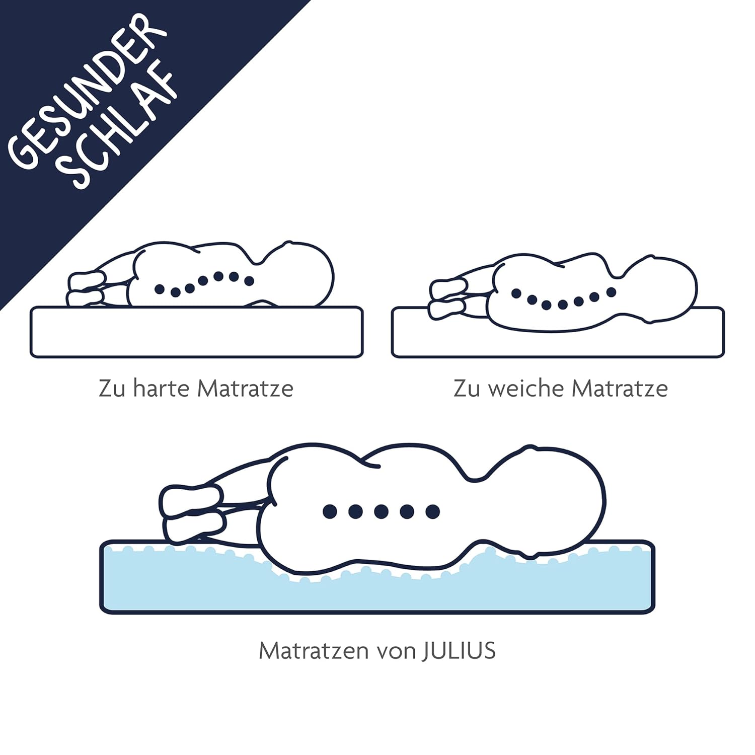 Besonders sensibel reagierende Babys profitieren von der gleichmäßigen Druckverteilung, die Druckstellen verhindert und somit zu ungestörtem Schlaf beiträgt. Die Oberfläche ist glatt und faltenfrei, sodass kein Stoff zwischen die zarte Haut gerät. Auch bei unruhigen Schläfern, die sich im Schlaf wiederholt bewegen, bleibt die Matratze stets eben – kein Verdrehen, kein Verrutschen.