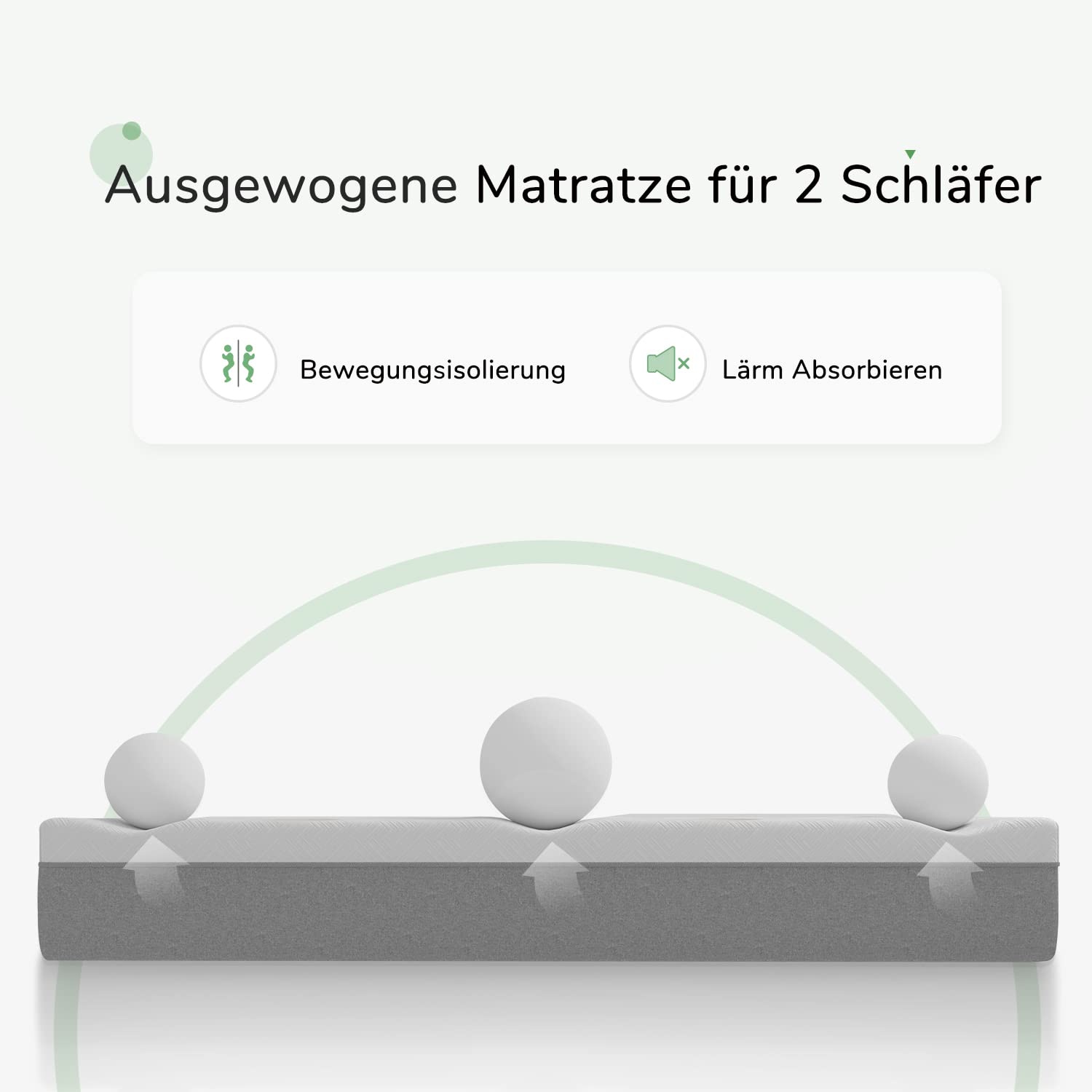 Diese Eigenschaft entsteht durch die Kombination aus viskoelastischem Gel-Memory-Foam und dem stabilen Kaltschaumkern. Beide Materialien absorbieren Impulse, ohne sie weiterzuleiten. Gleichzeitig bleibt die Matratze formstabil genug, um gemeinsames Sitzen am Bettrand oder Spielen von Kindern problemlos zu tragen. Das macht sie zur idealen Wahl für Familien, Paare mit unterschiedlichen Schlafgewohnheiten oder Wohngemeinschaften.
