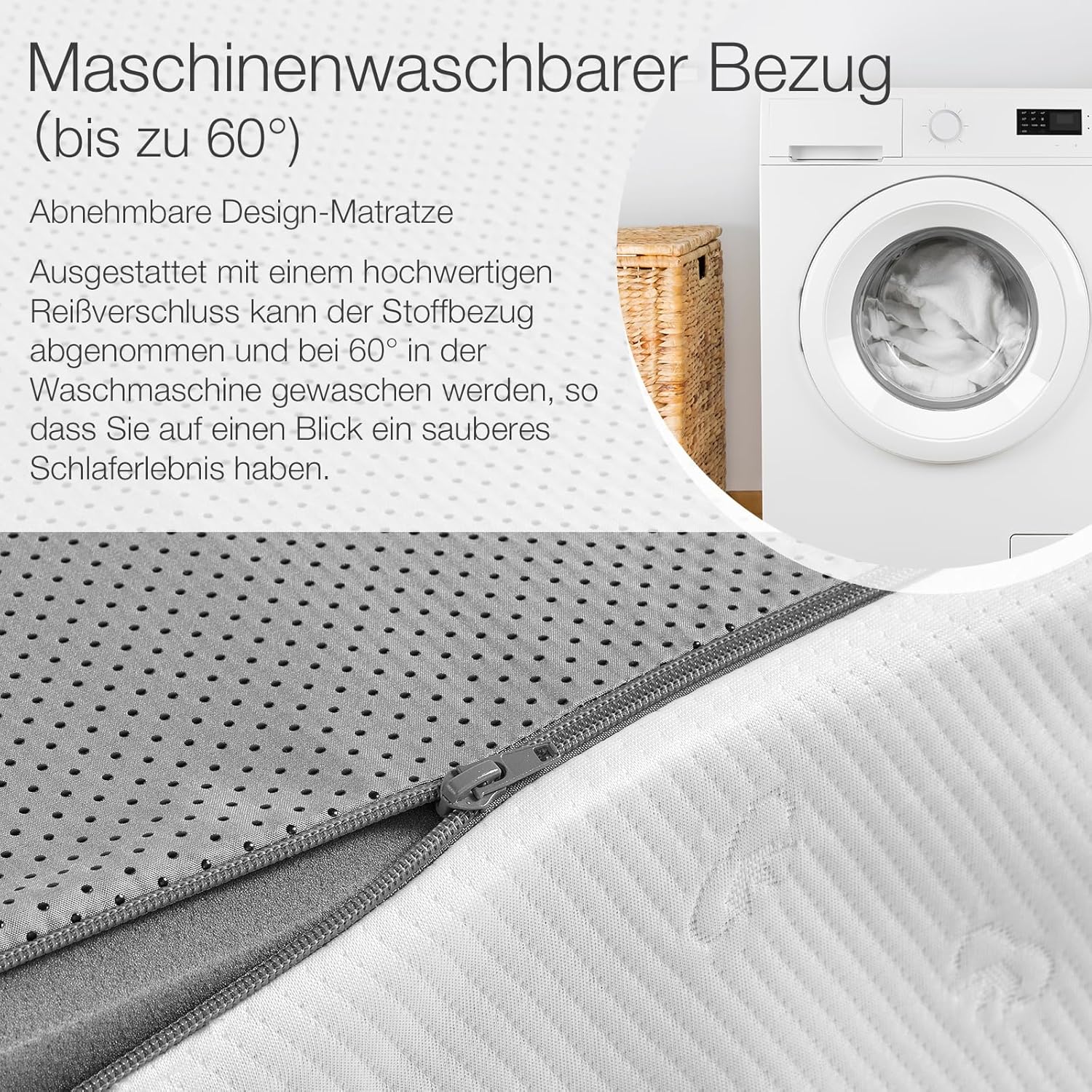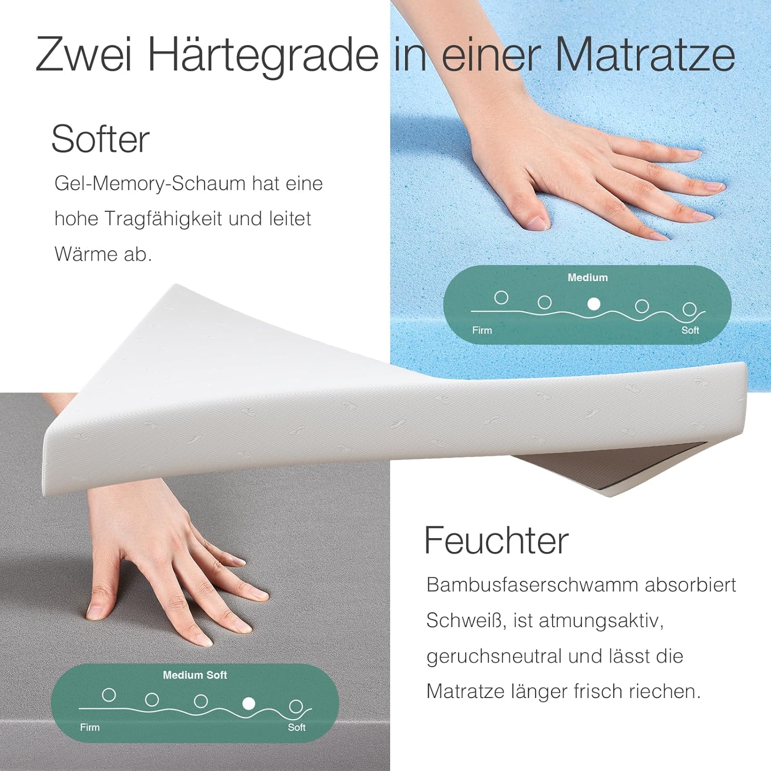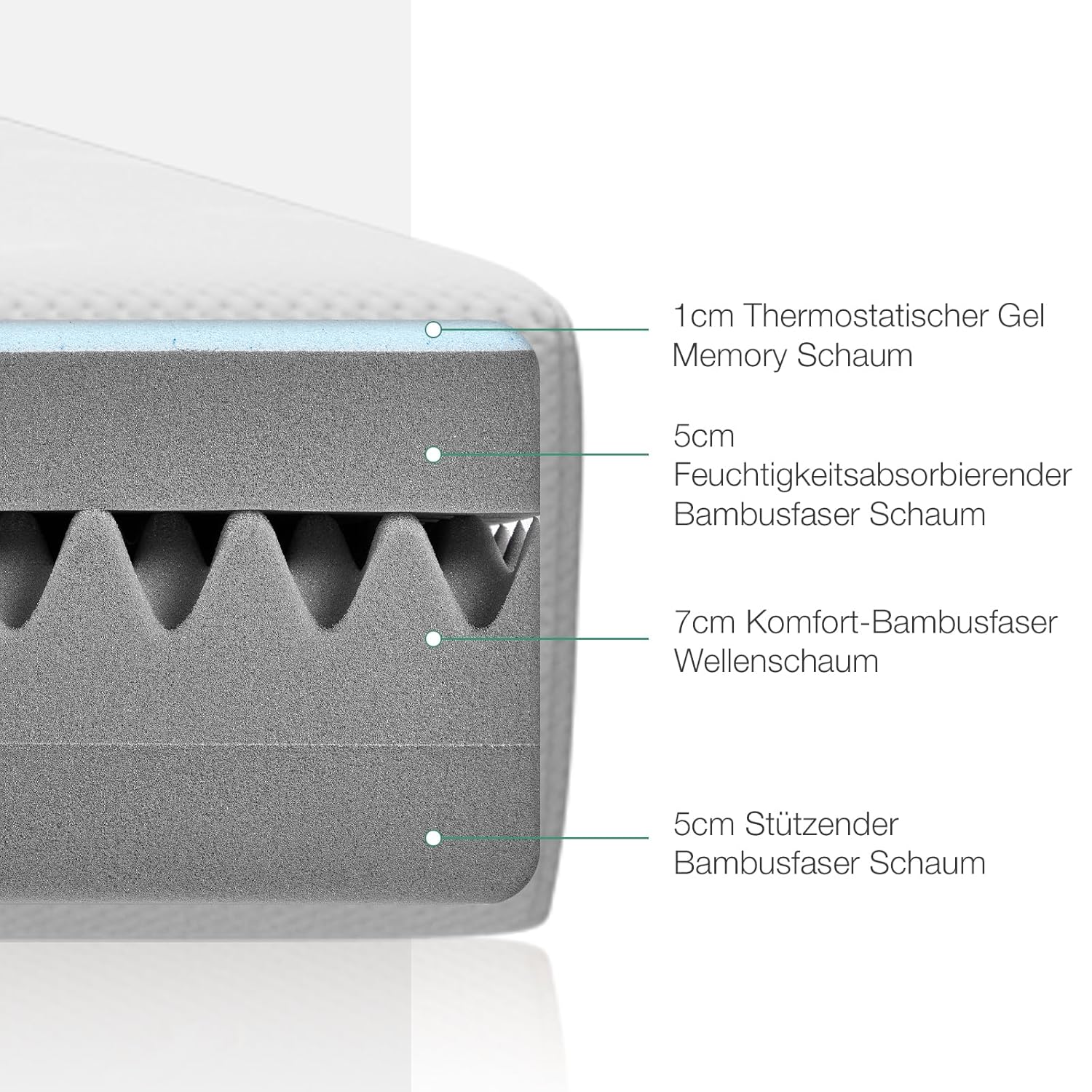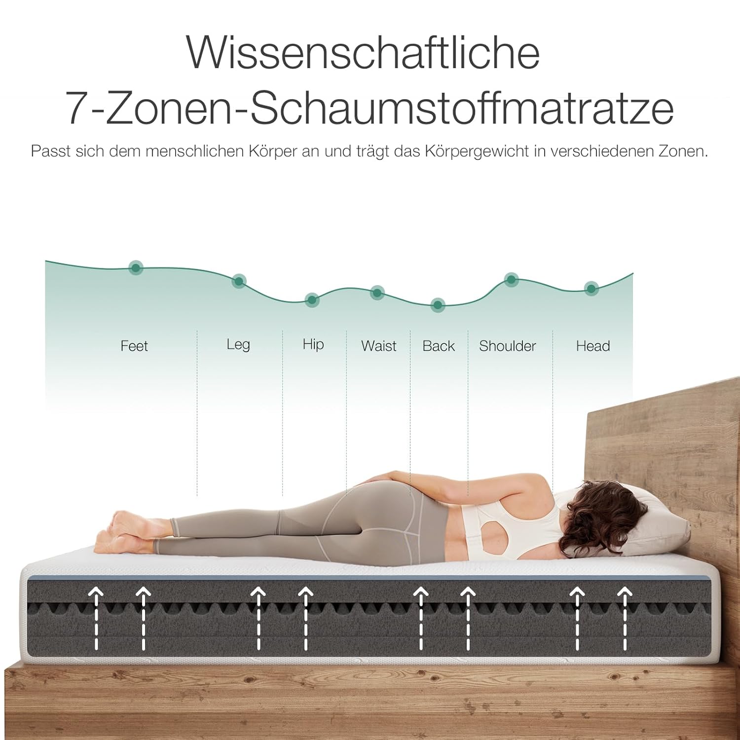 - Matratzenkern: 7-Zonen Gelschaum + Bambus-Faserschaum