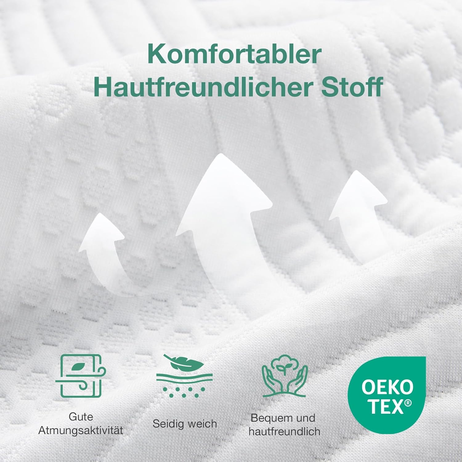 - Weicher, hypoallergener Bezug aus Bambus-Mix-Gewebe mit natürlicher Feuchtigkeitsregulation