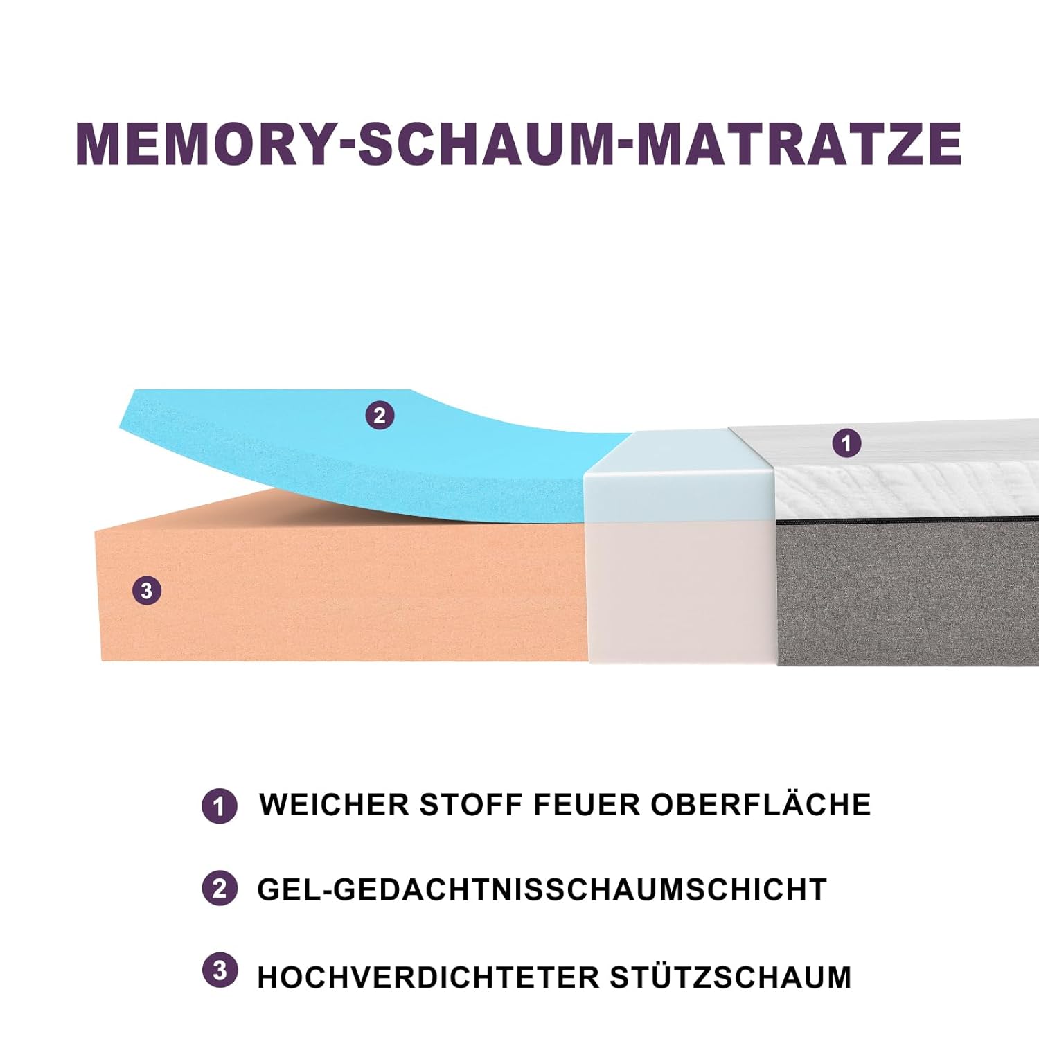 - Spezielle Gel-Memory-Schaum-Schicht für Druckentlastung und Temperaturregulation