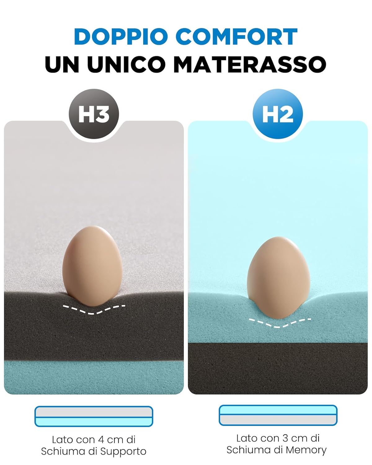 - Zweisetzige Härtewahl: H2 (weich) für Seitenschläfer & Bauchschläfer, H3 (fest) für Rückenschläfer & Personen mit Rückenbeschwerden