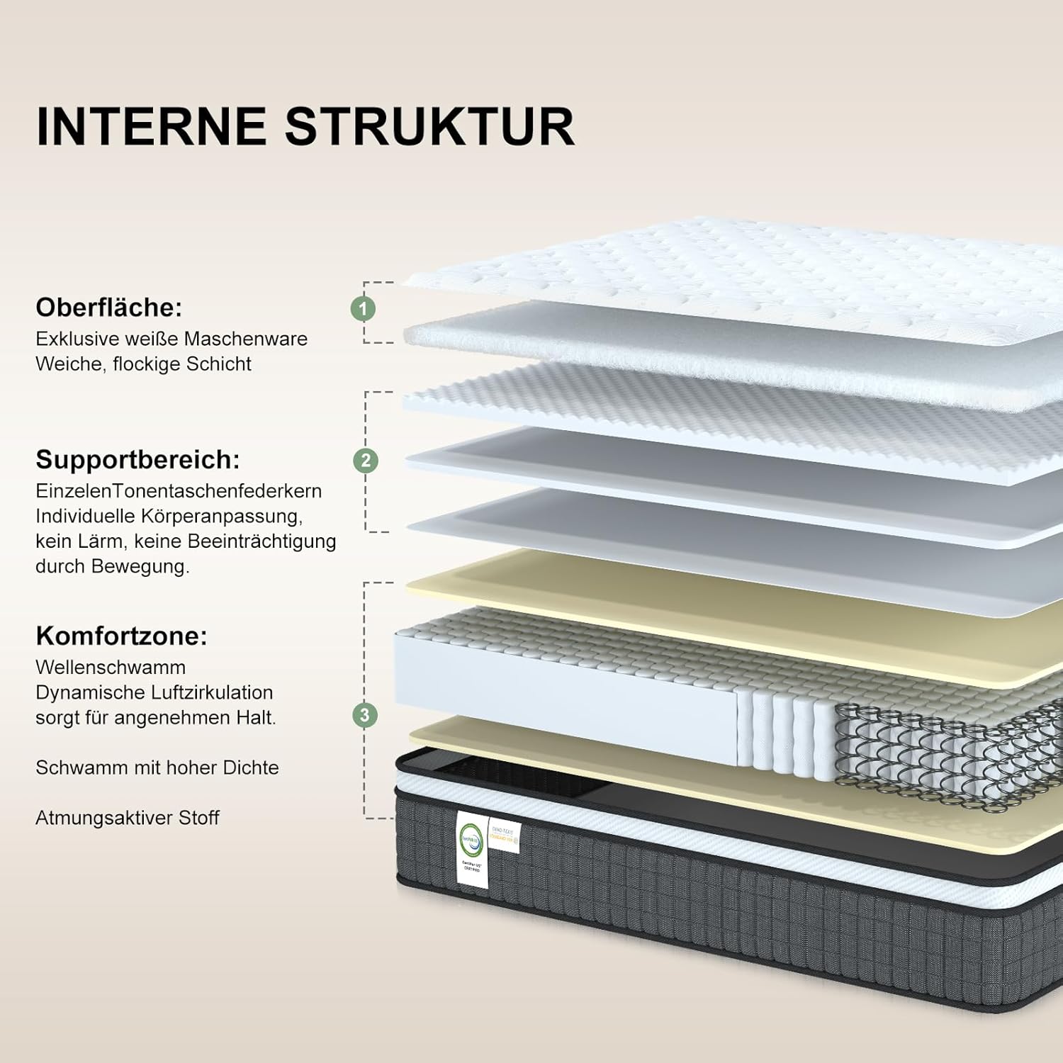 - Kern: Tonnentaschenfederkern mit Einzelfederung