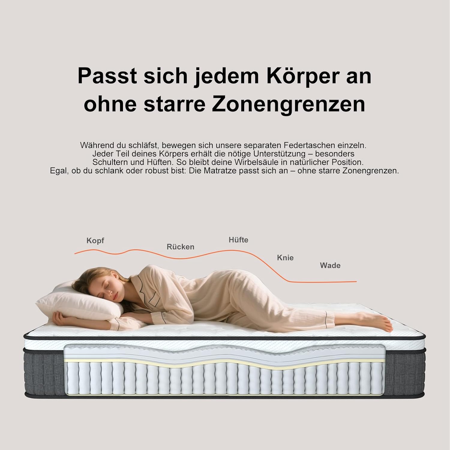In einer Welt, in der Hektik, Termine und digitale Reize unseren Alltag bestimmen, wird der erholsame Schlaf zum wertvollsten Luxus. Die LUOLAI L8-1 Matratze wurde entwickelt, um diesen Luxus nicht dem Zufall zu überlassen. Mit einer präzisen Kombination aus hochdichtem Schaumstoff, unabhängig arbeitenden Tonnentaschenfedern und einer intelligenten Schichtstruktur bietet sie das Versprechen eines tiefen, regenerativen Schlafs – jede Nacht aufs Neue. Ob Sie auf der Seite schlafen, auf dem Rücken liegen oder im Schlaf die Position wechseln – diese Matratze passt sich Ihrem individuellen Schlafverhalten an und sorgt für optimale Wirbelsäulenentlastung, ohne Kompromisse bei Stabilität oder Langlebigkeit einzugehen.