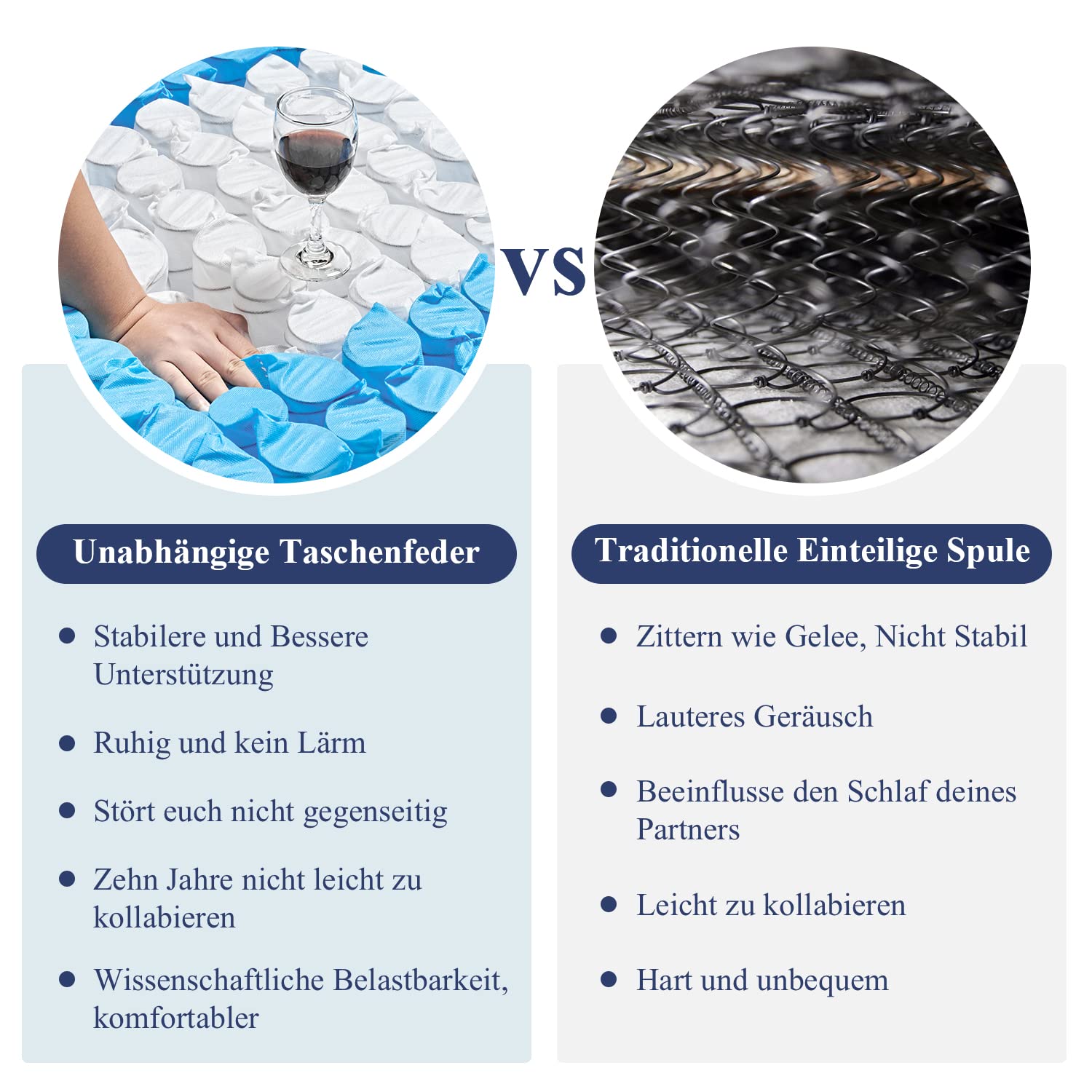 - Unabhängiger Taschenfederkern aus rostfreiem Carbon-Stahl für punktgenaue Unterstützung