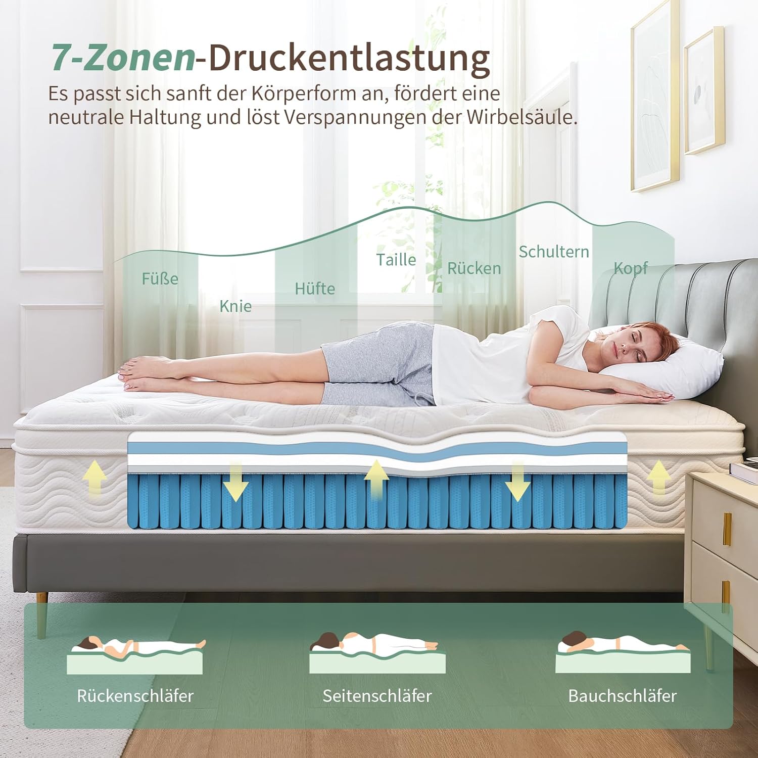 • Ideal für Rücken-, Seiten- und Bauchschläfer