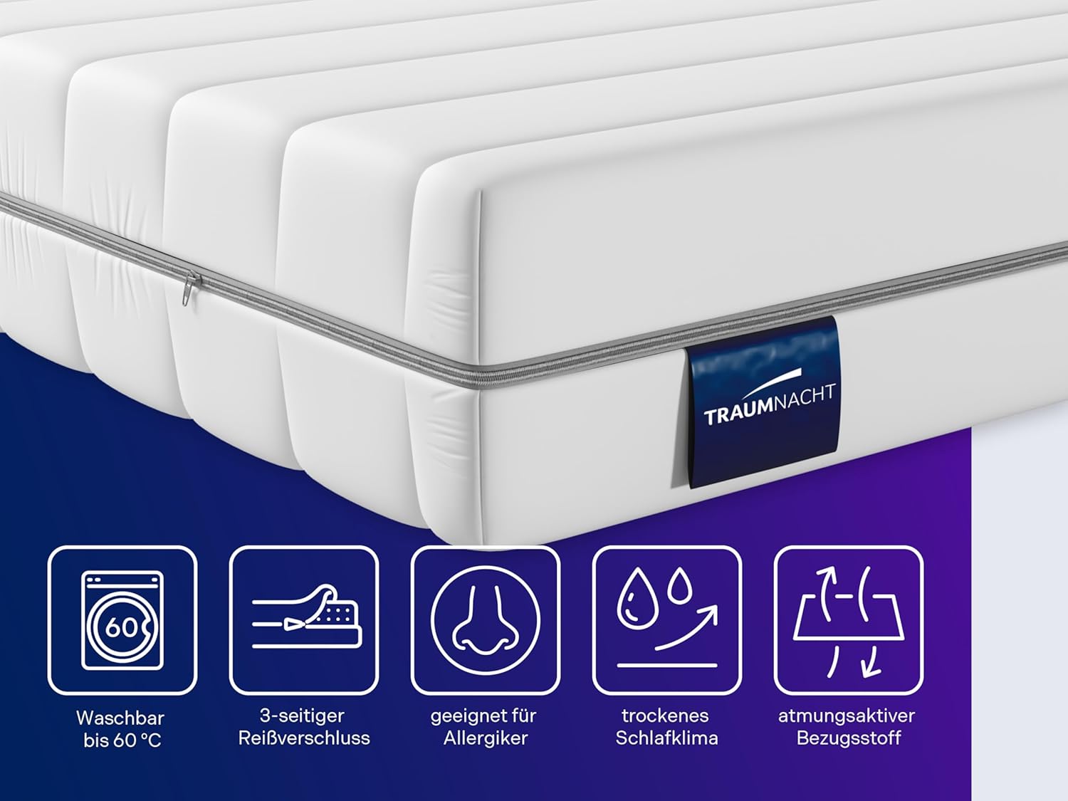 Die Traumnacht Base Cold Foammatratze ist mehr als nur eine Matratze – sie ist ein Versprechen auf besseren Schlaf, mehr Wohlbefinden und tägliche Erholung. Für Kinder, Jugendliche, Studenten oder als Gästebett – sie überzeugt durch durchdachte Ergonomie, hochwertige Materialien und eine Pflegeleichtigkeit, die im hektischen Alltag wertvoll ist. Schlafen Sie nicht einfach – schlafen Sie richtig. Mit Traumnacht.