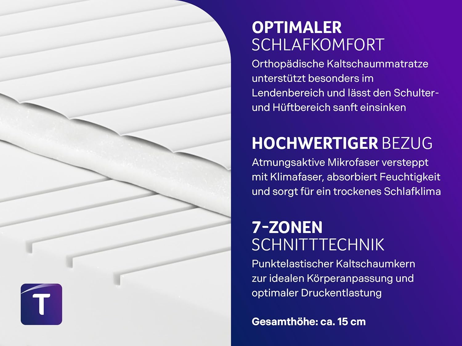 - Matratzenkern: Hochwertiger Kaltschaum, 7-Zonen-Schnitt