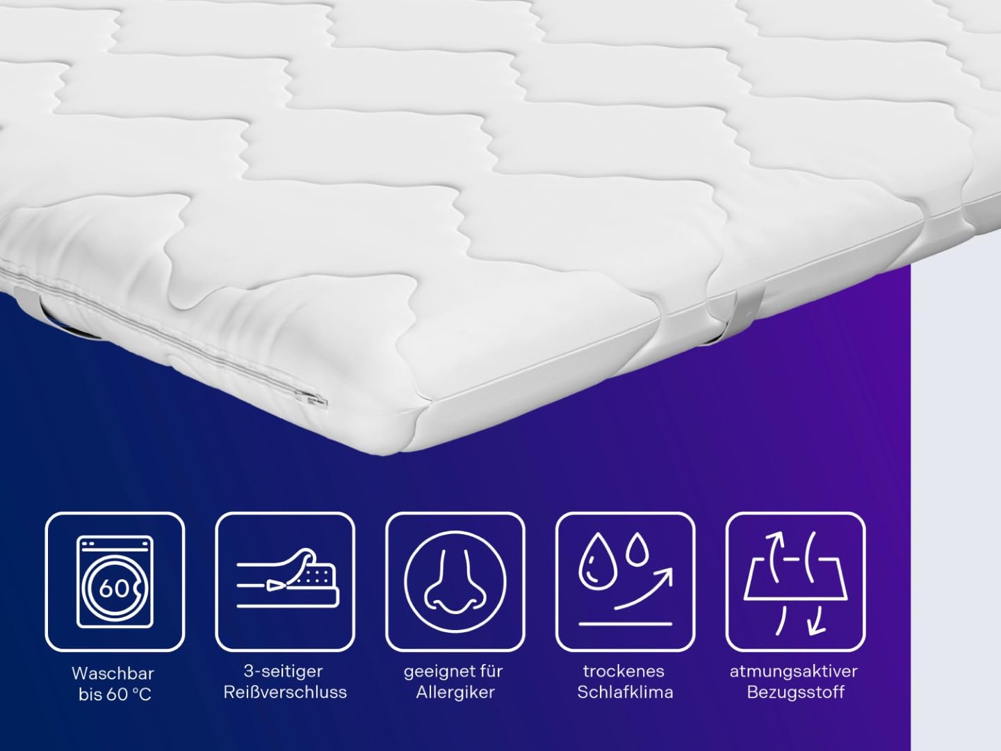 Besonders wichtig ist dies für Hausstauballergiker: Durch die feinmaschige, aber atmungsaktive Mikrofaser wird das Eindringen von Milben und Staubpartikeln erschwert. Gleichzeitig lässt sich der Bezug bei bis zu 60 °C waschen – eine Temperatur, die Hausstaubmilben zuverlässig abstirbt. So bleibt die Auflage nicht nur frisch, sondern hygienisch sicher über Jahre hinweg.