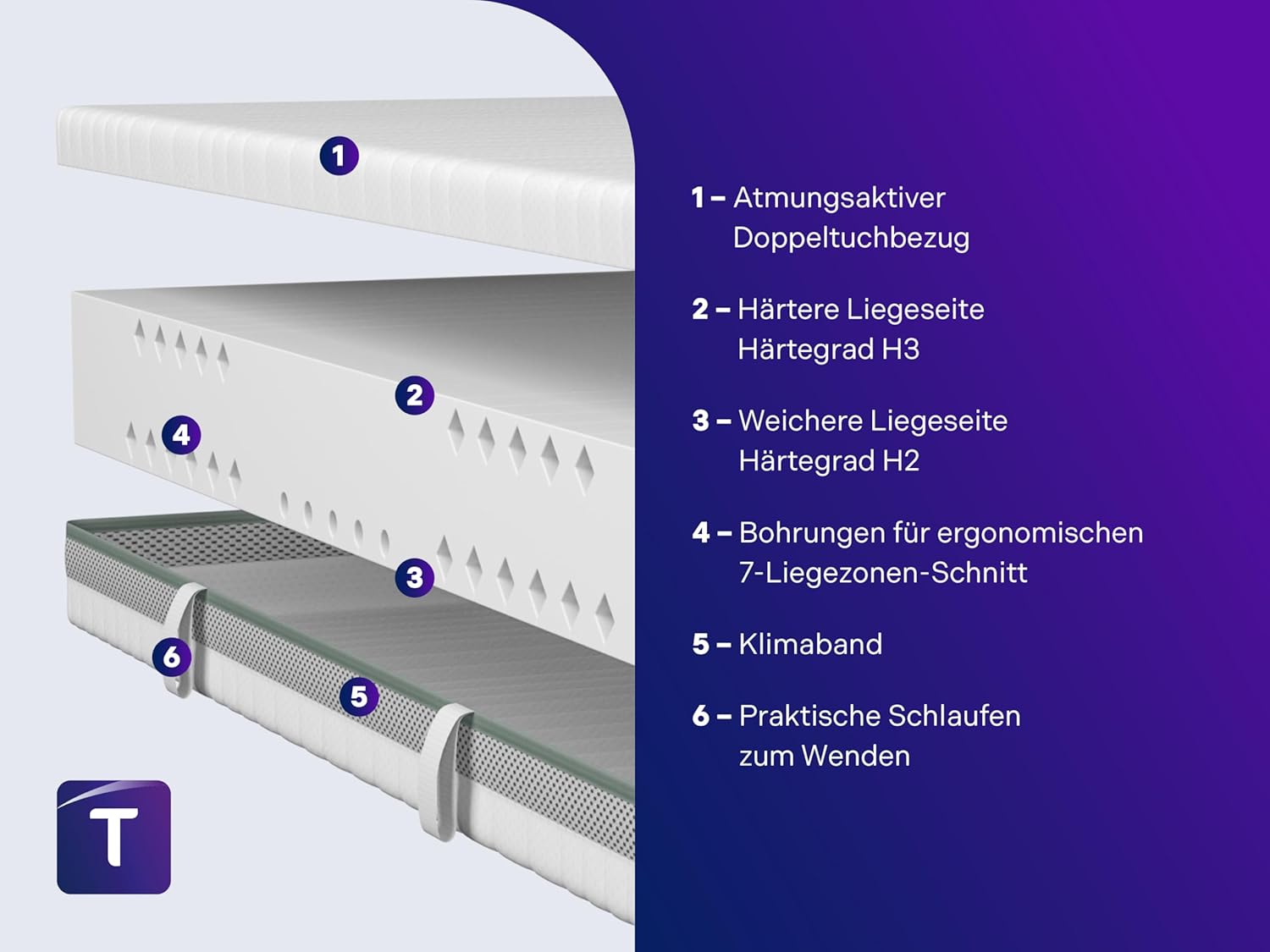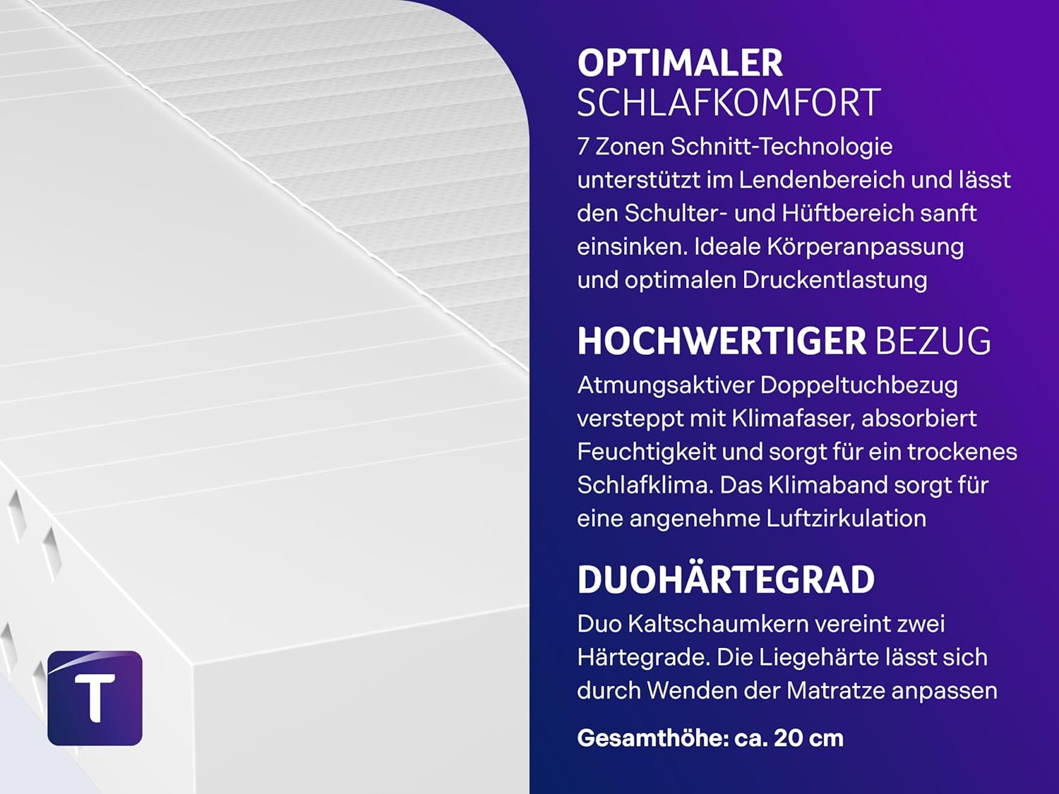 - Kernmaterial: 7-Zonen-Kaltschaum