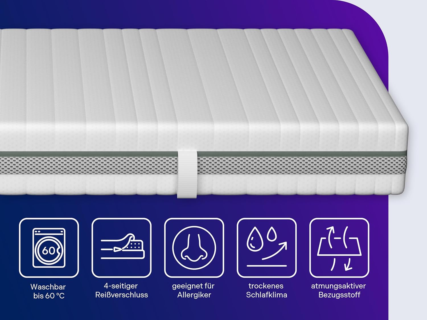 Auch im täglichen Gebrauch bietet die Matratze ein hohes Maß an Sicherheit: Der abnehmbare Bezug ist bei 60 °C waschbar, wodurch Hausstaubmilben, Bakterien und Schimmelpilze zuverlässig eliminiert werden. Dies ist besonders wichtig für Allergiker, aber auch für alle, die Wert auf ein hygienisch einwandfreies Schlafumfeld legen.