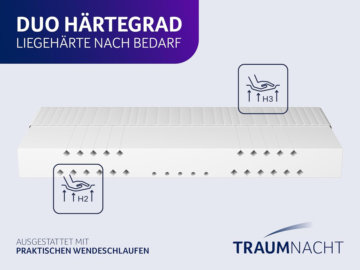 - 2-in-1 Duo-Härtesystem: Härtegrad 2 (weich) und Härtegrad 3 (mittelhart) – durch Wenden individuell wählbar