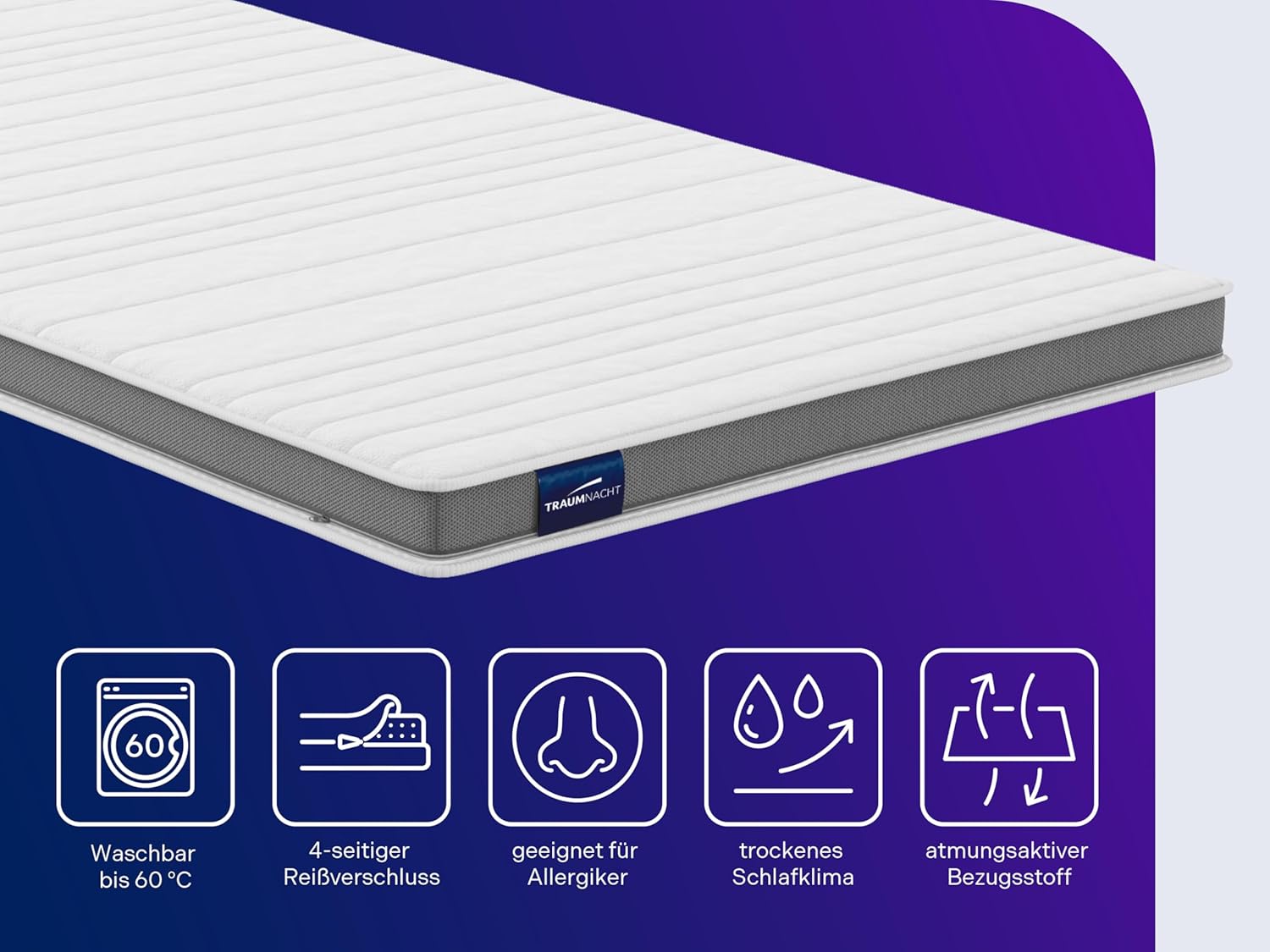 Traumnacht Visco-Kaltschaum Topper, 7 Zonen, ergonomisch, atmungsaktiv, Made in Germany