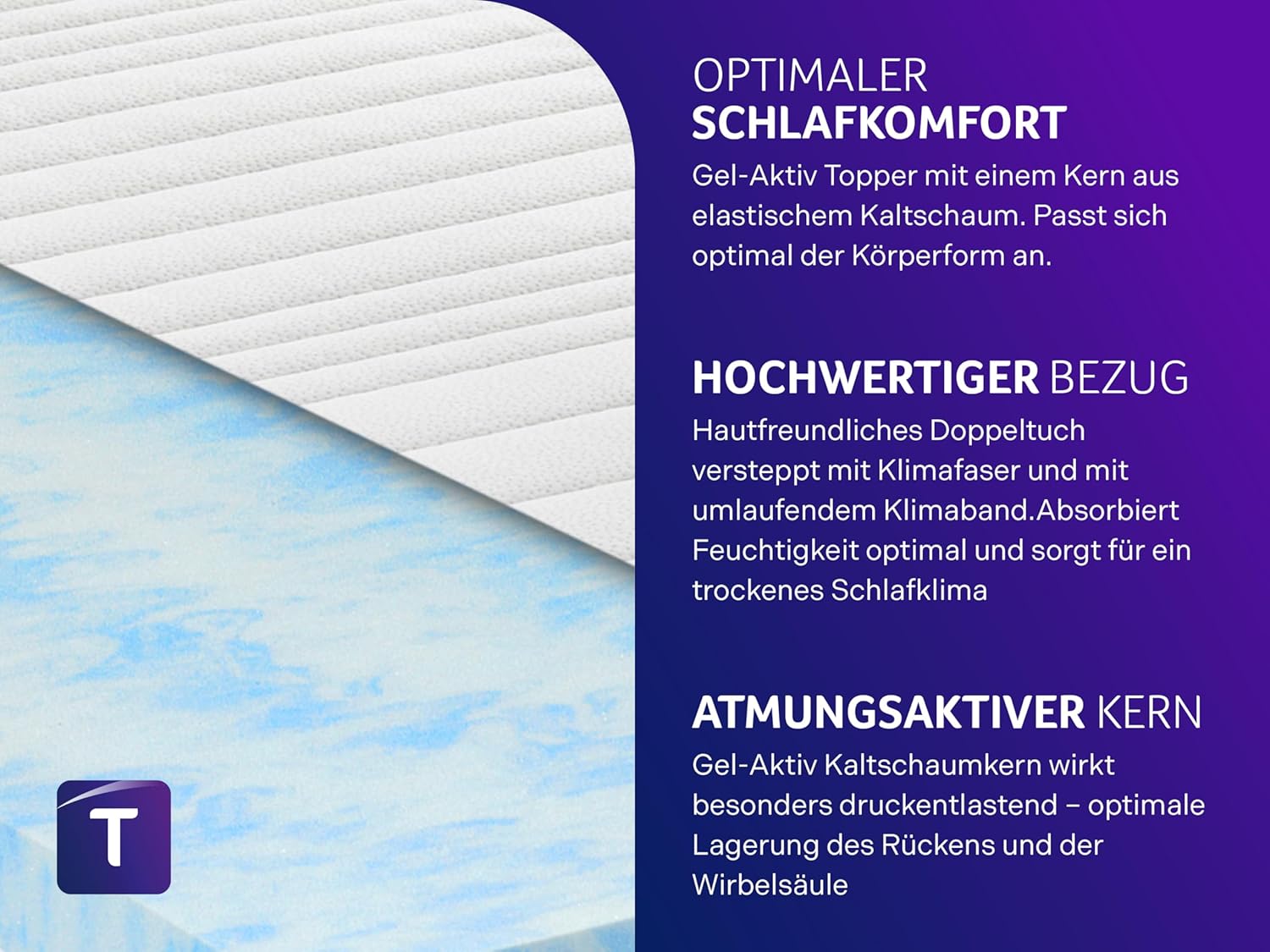 • Kernmaterial: Gelaktiver Kaltschaum (Visco / Cold Foam)