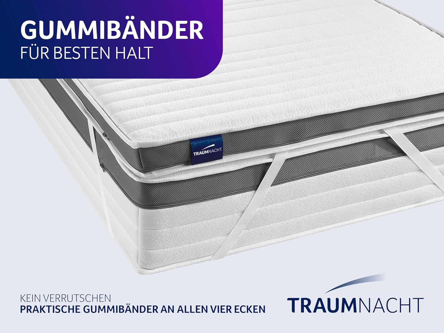 • Elastische Befestigungsbänder – sichere und rutschfeste Befestigung auf jeder Matratze